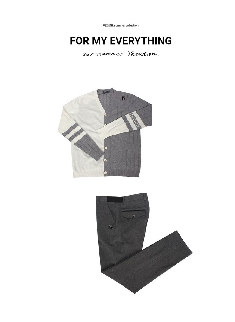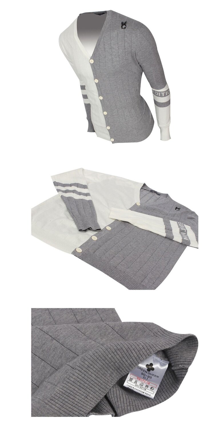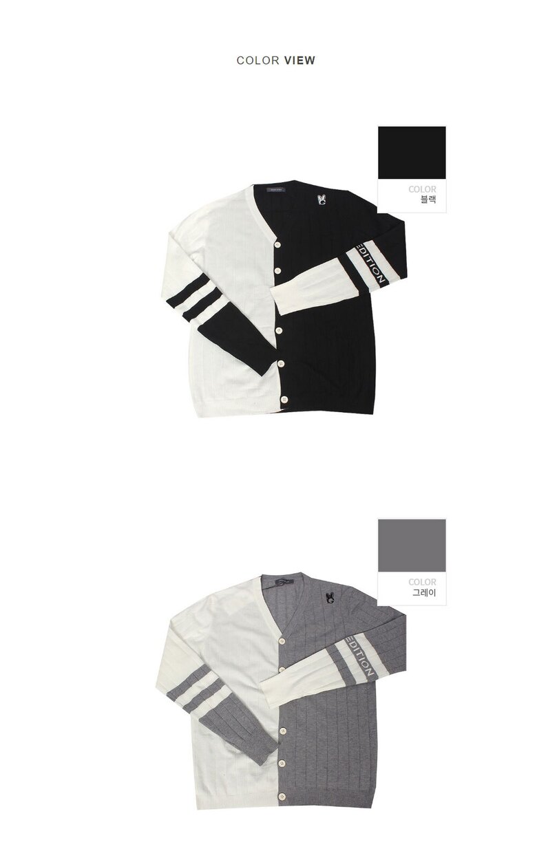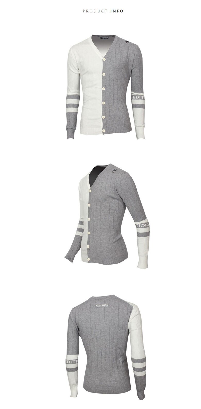 그렌에코 남성 봄 가을 골프웨어 골프 브이넥 배색 가디건 그레이 G282347