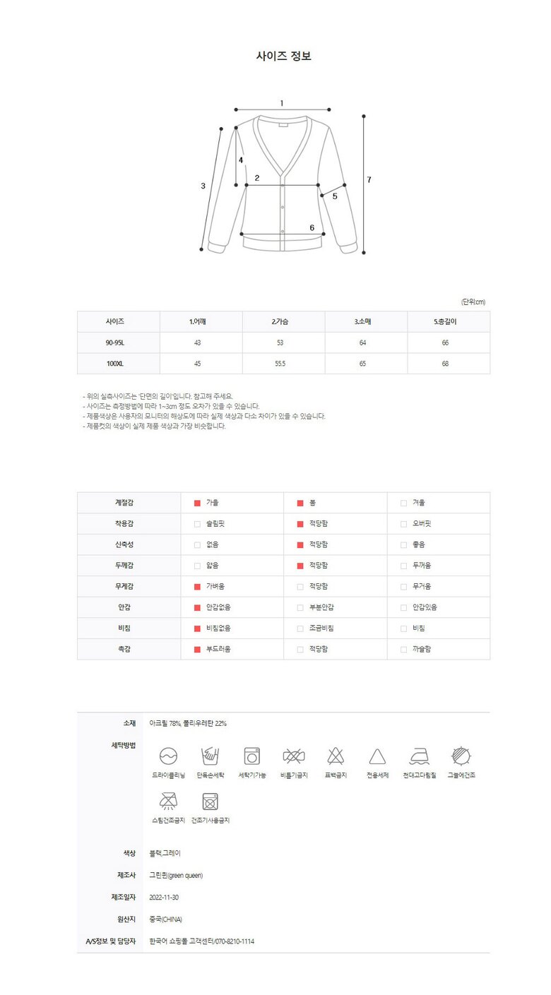 | 6. 세탁방법 및 취급시 주의사항 | 상세이미지 참조 |