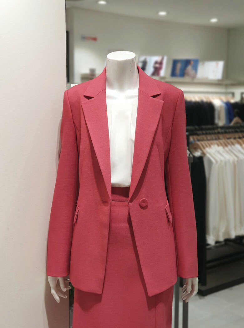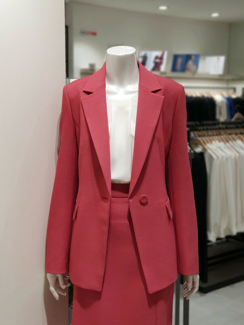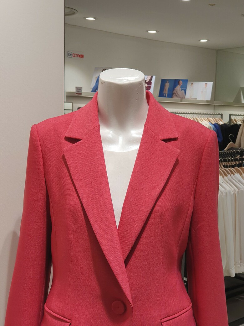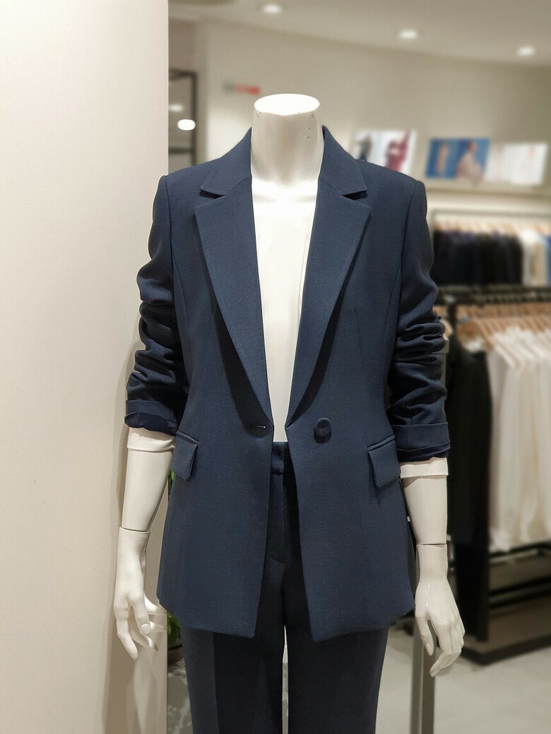 원버튼 디테일이 깔끔한 느낌을 주는 포멀한 무드의 싱글 재킷입니다.