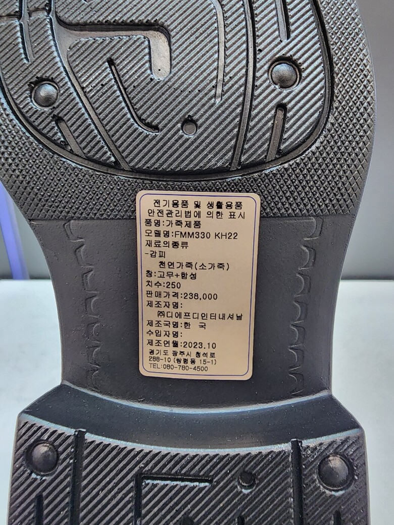 | 1. 제품 소재 (운동화인 경우에는 겉감, 안감을 구분하여 표시) | 소가죽 |