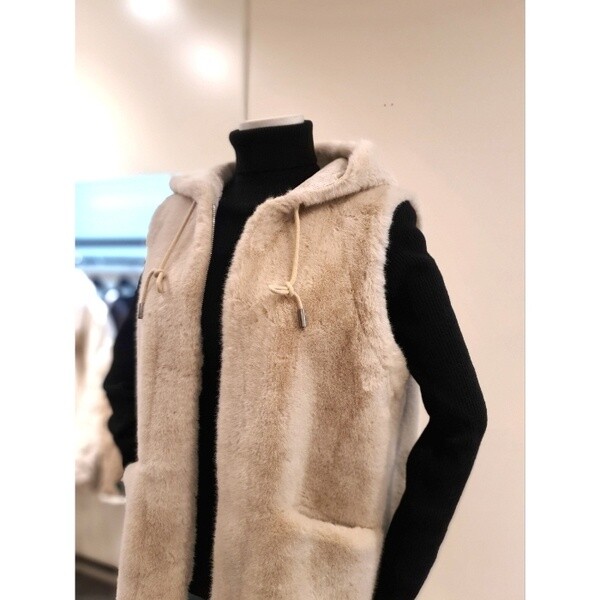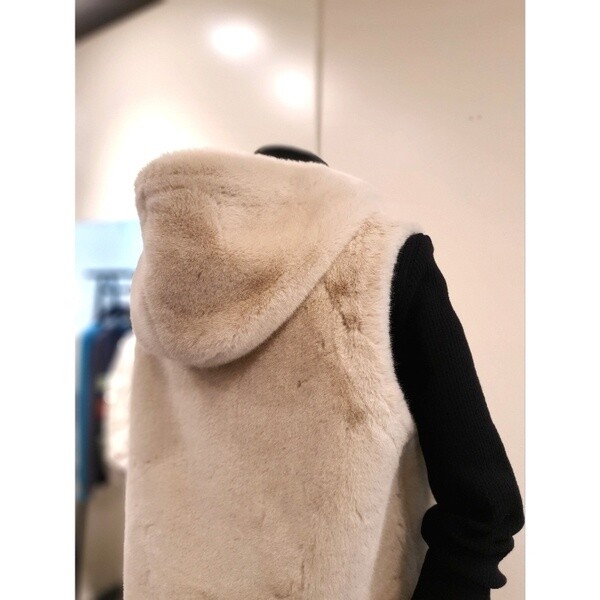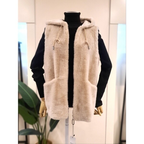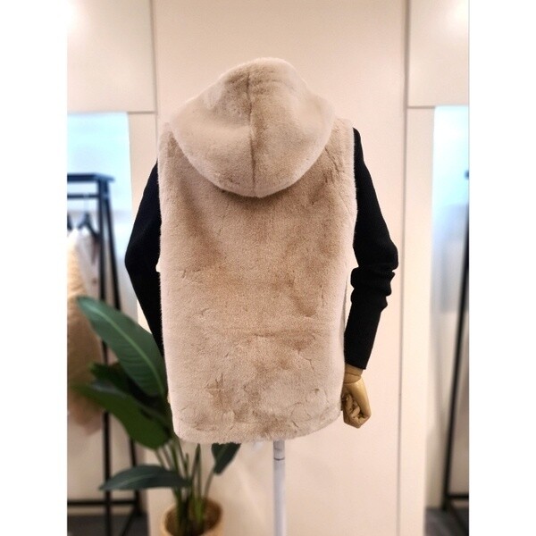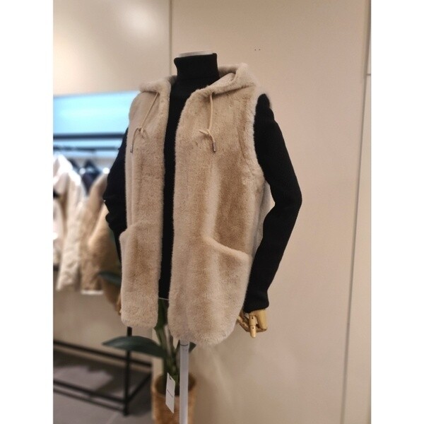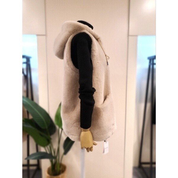 KNFUNB01_에코 스트링 후드 퍼 베스트 베이지