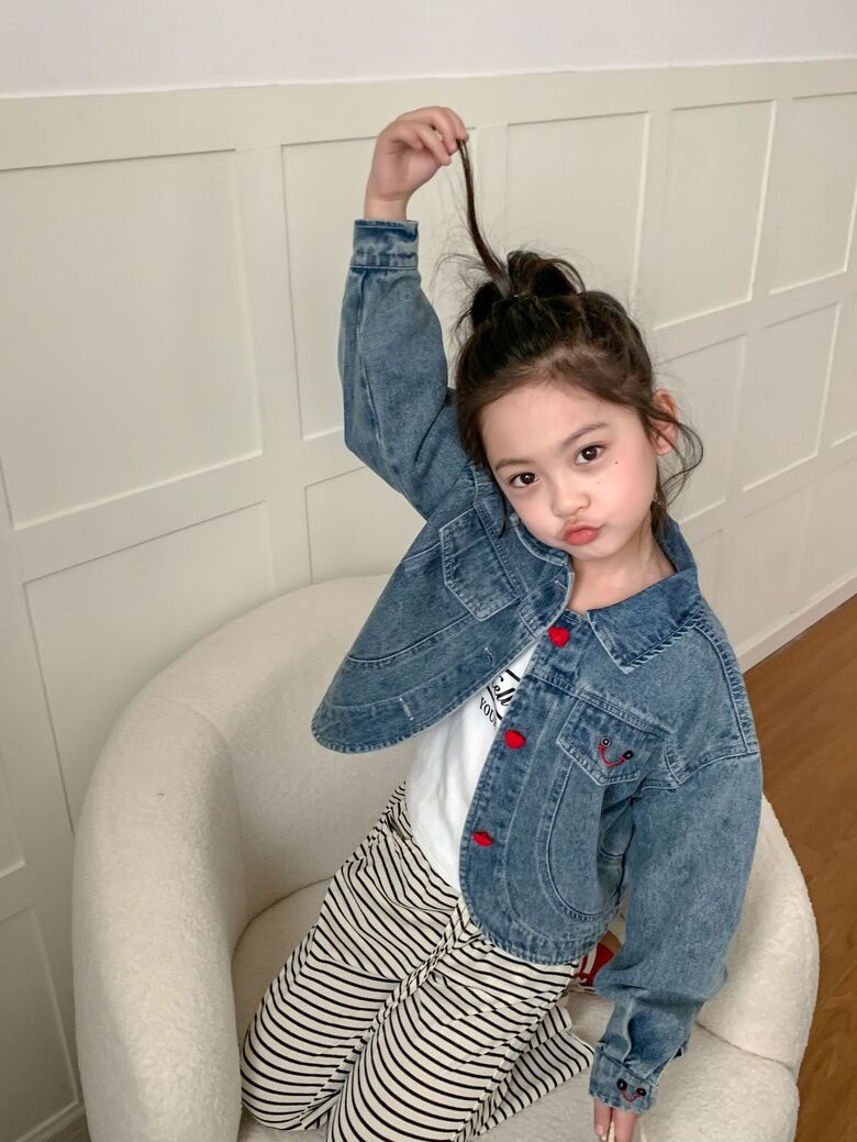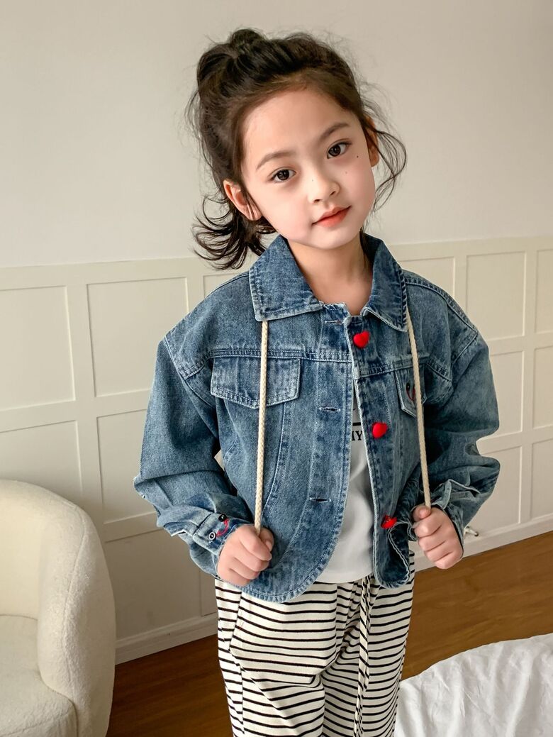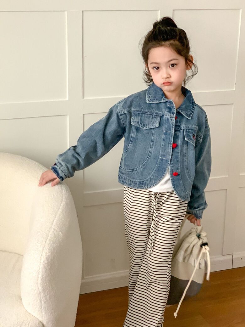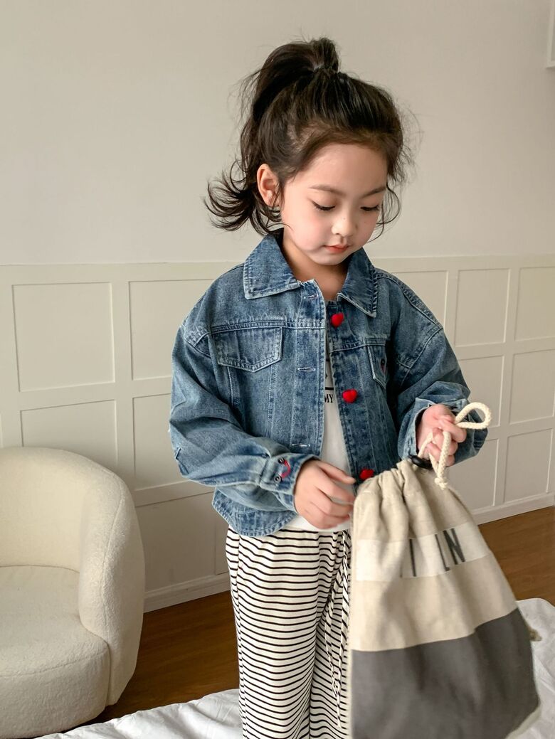 [예약발송] 하트 버튼 숏 데님 자켓 R10905