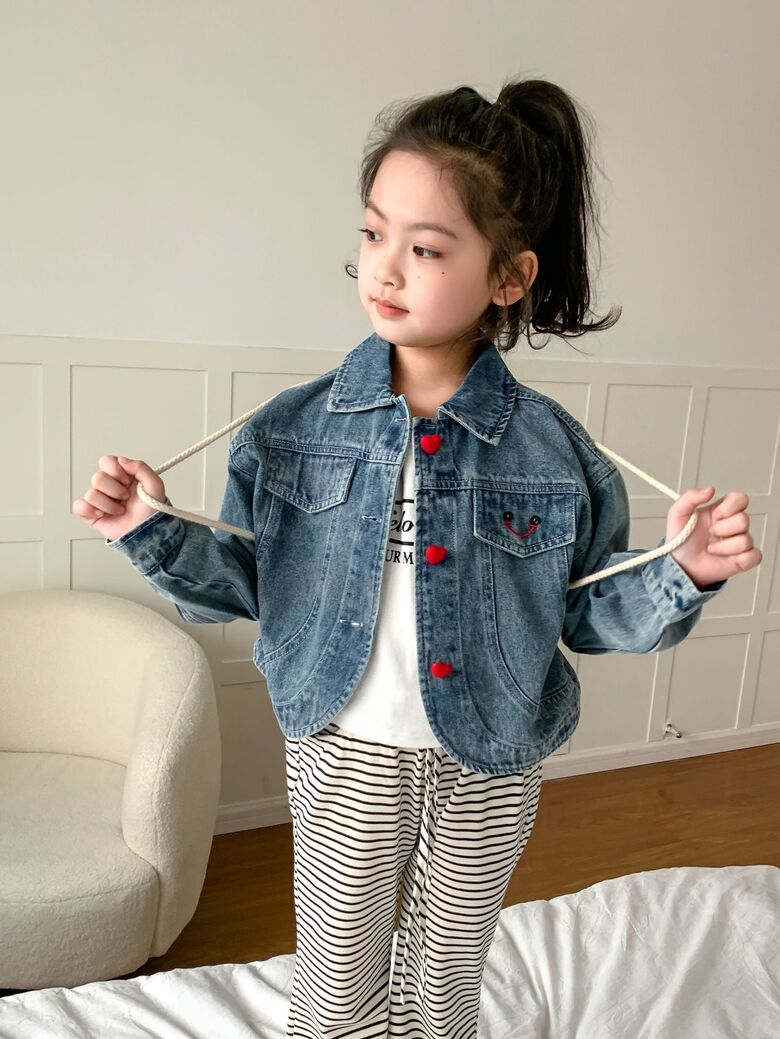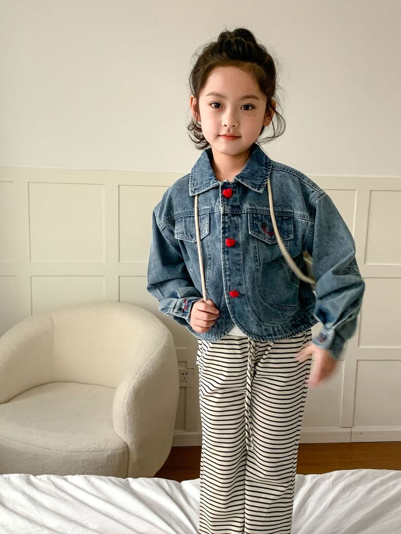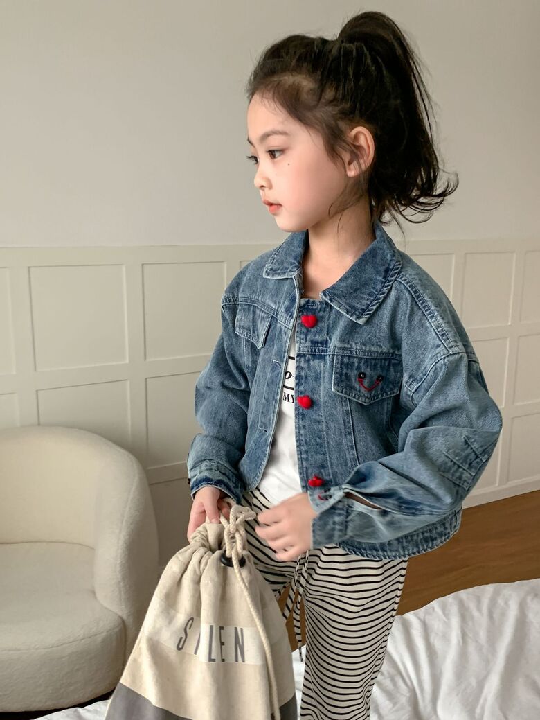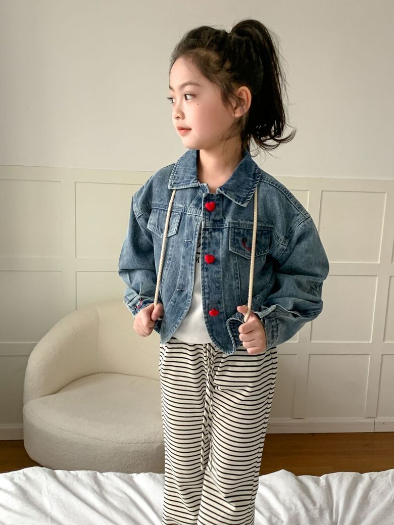 [예약발송] 하트 버튼 숏 데님 자켓 R10905