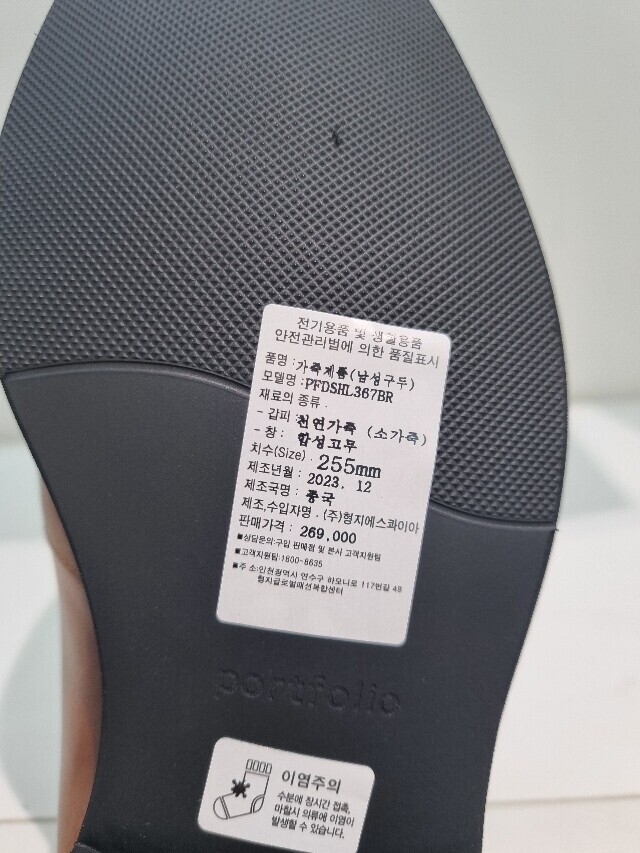 | 1. 제품 소재 (운동화인 경우에는 겉감, 안감을 구분하여 표시) | 소가죽 |