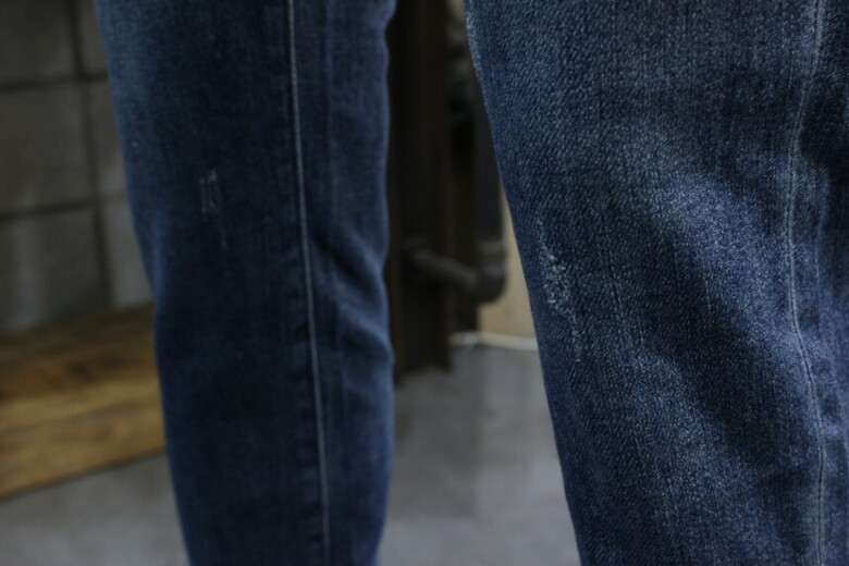 자연스러운 블루워싱에 작은 스크레치들로 은은하게 빈티지한느낌입니다