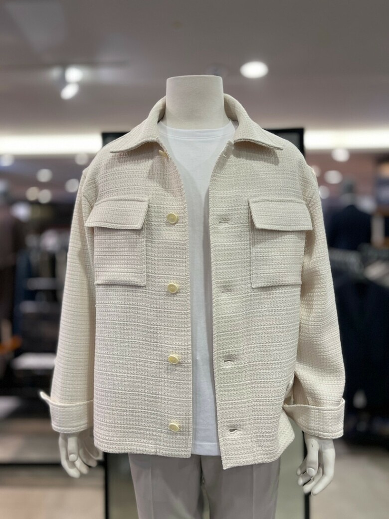 아이보리 트위드 오버핏 아우터형 셔츠