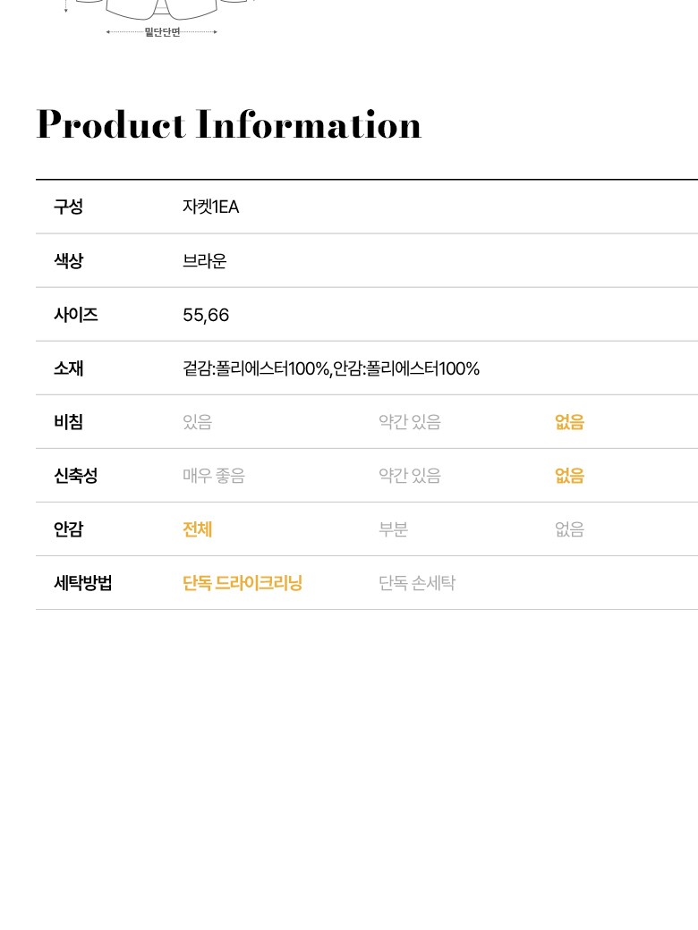 | 6. 세탁방법 및 취급시 주의사항 | 드라이클리닝 |