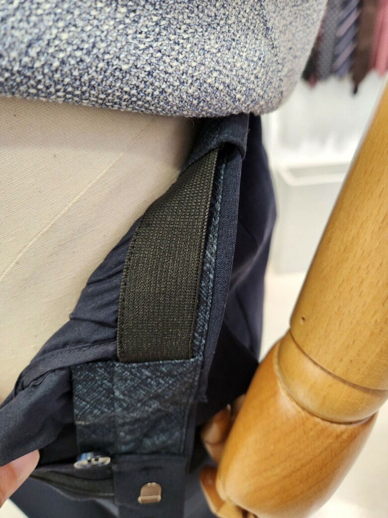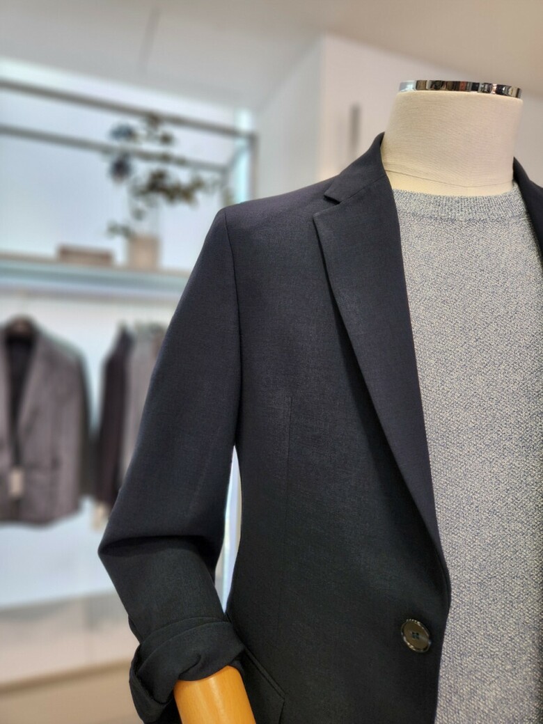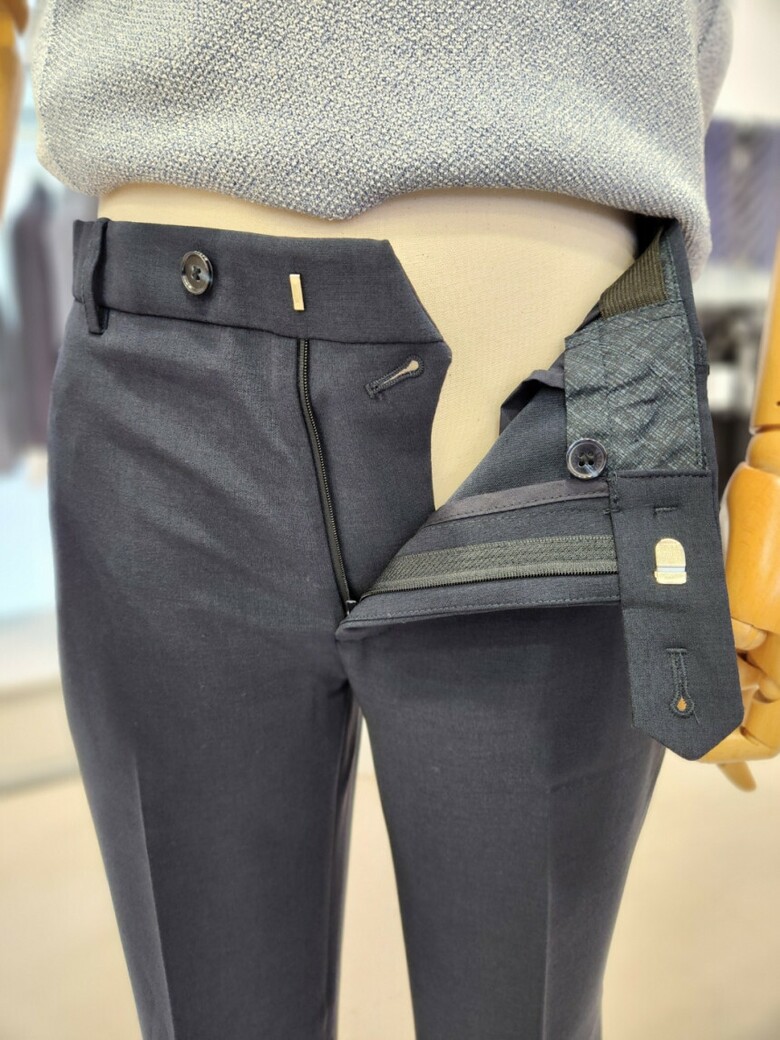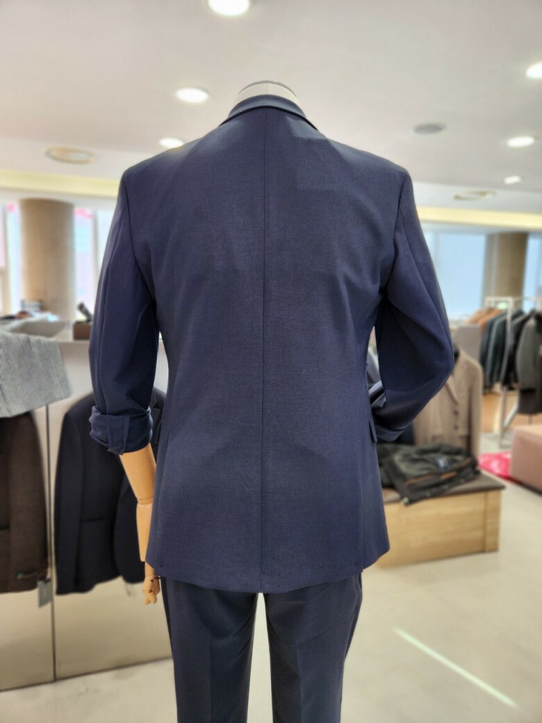 원단이 부드러우며 네이비 컬러의 셋업이라 슈트 대용 착장이 가능합니다.