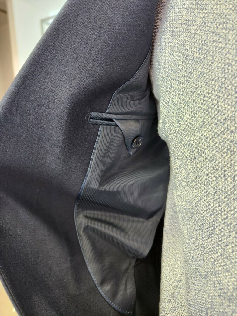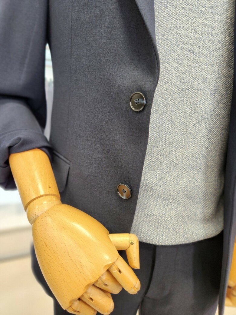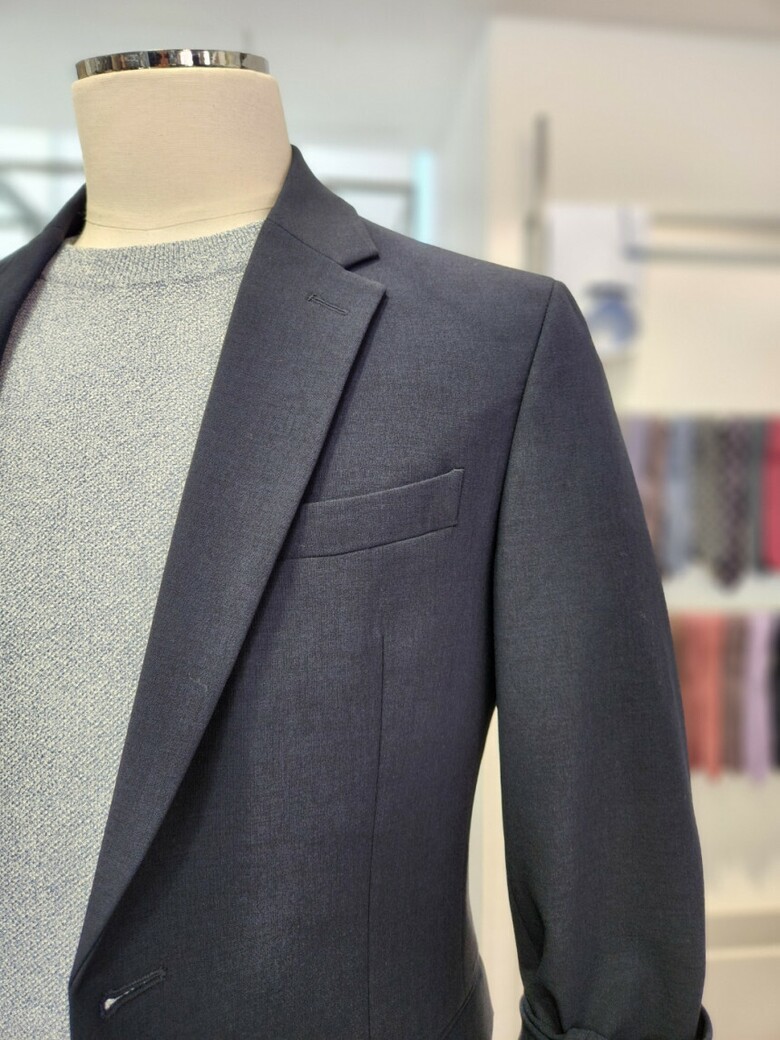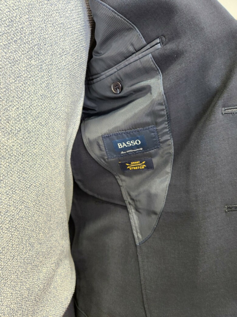 원단이 부드러우며 네이비 컬러의 셋업이라 슈트 대용 착장이 가능합니다.