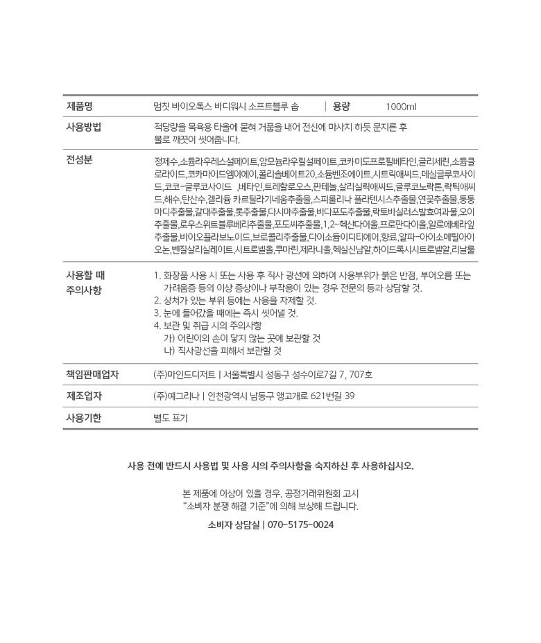 멈칫 대용량 바이오톡스바디워시1000ml 비누향