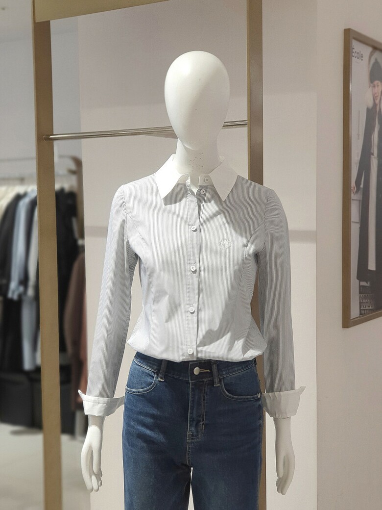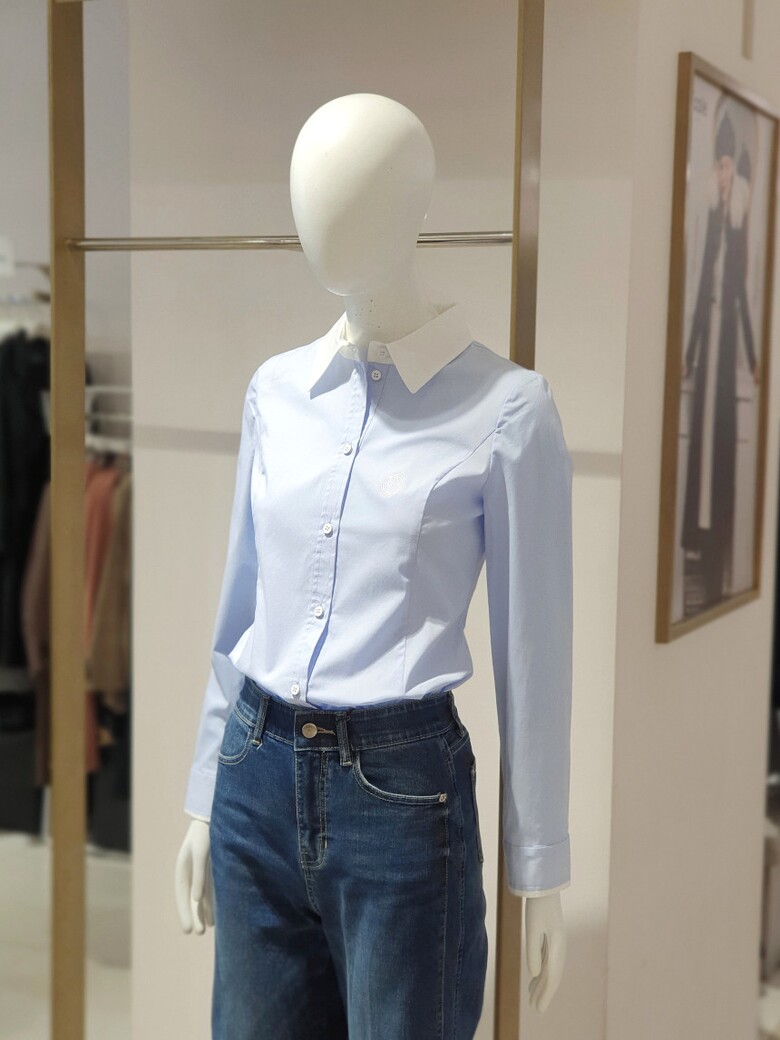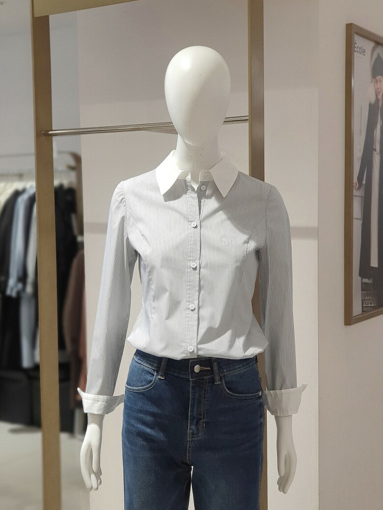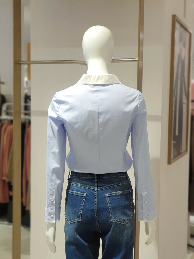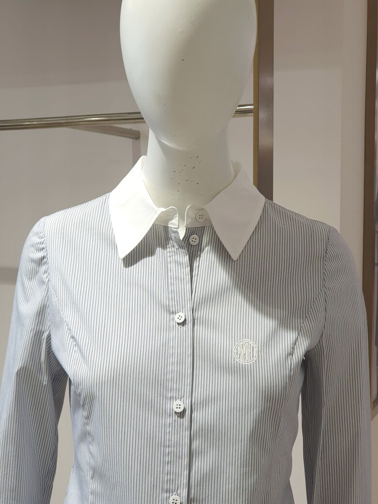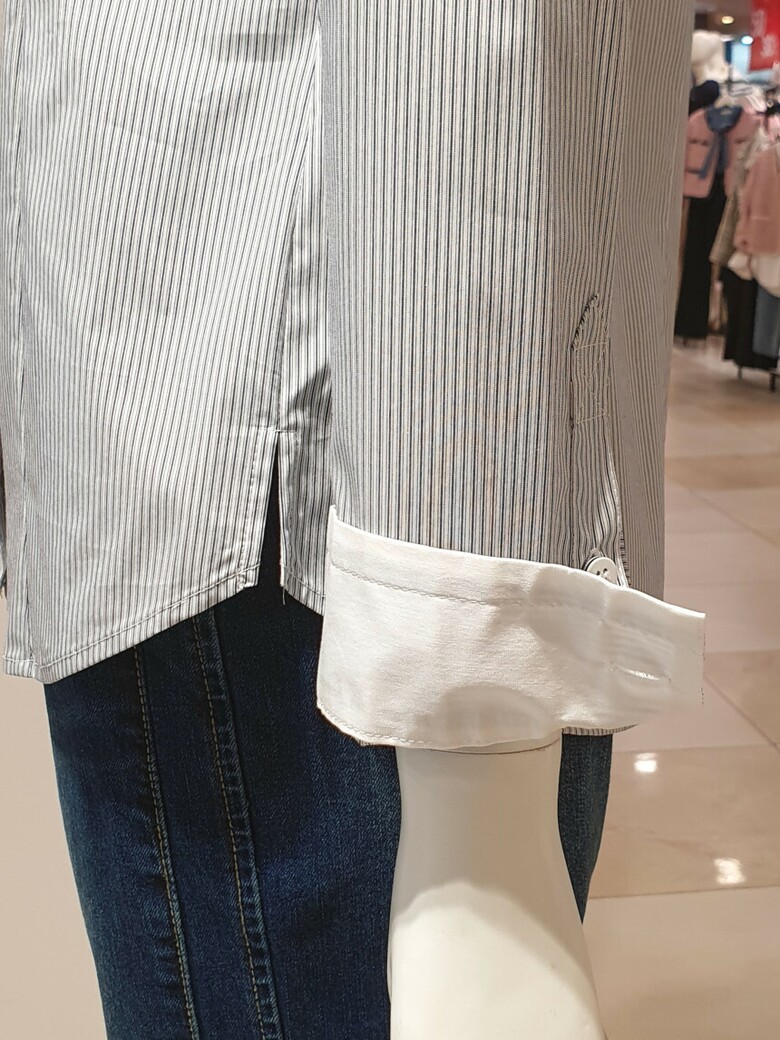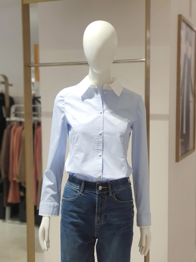 배색 카라와 소매 안쪽 배색 디테일로 포인트를 준 셔츠입니다.
