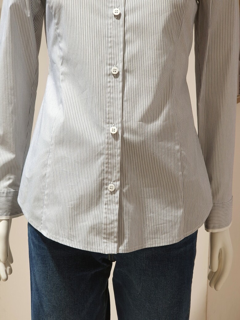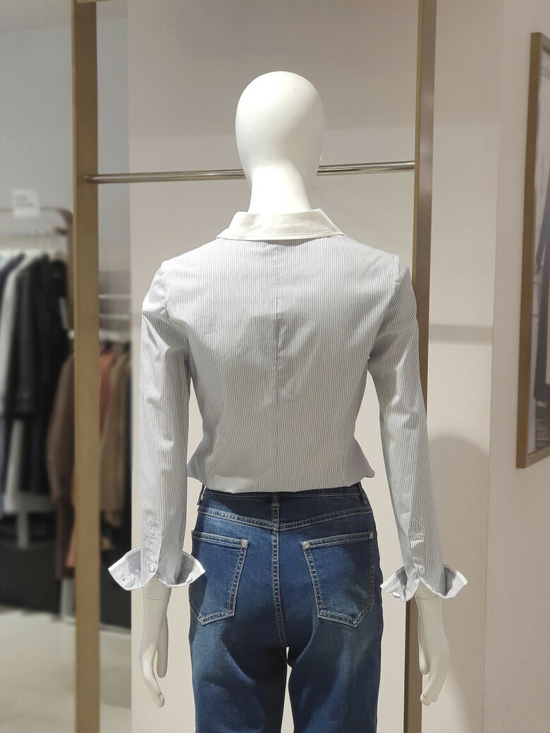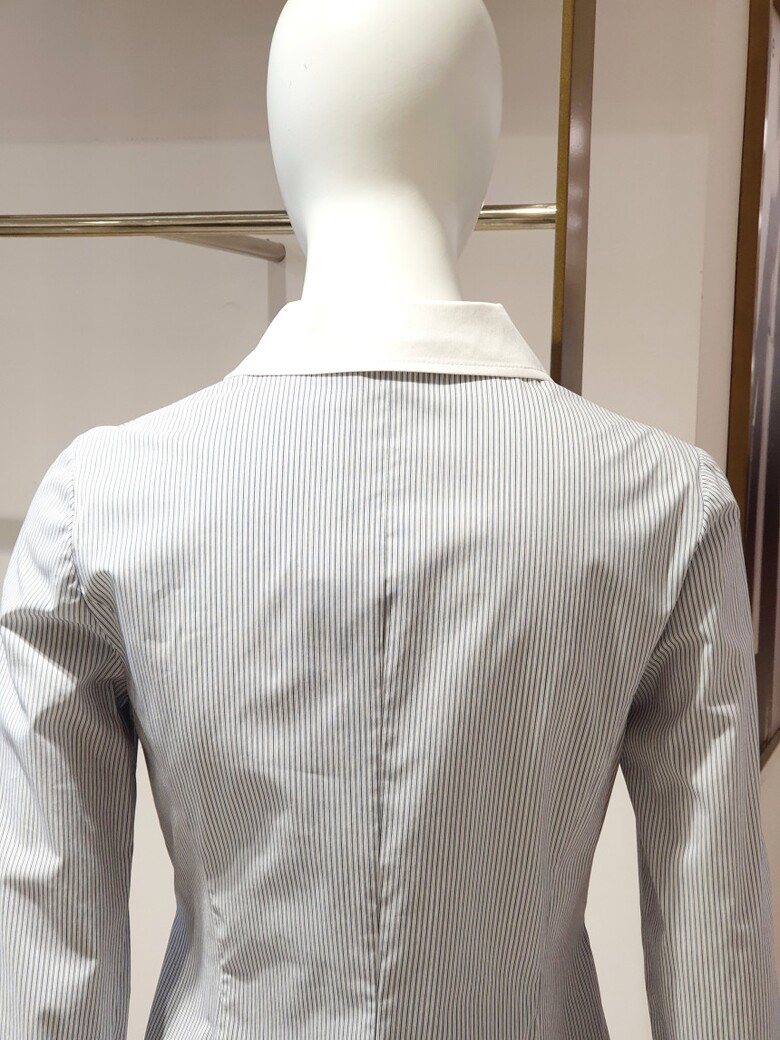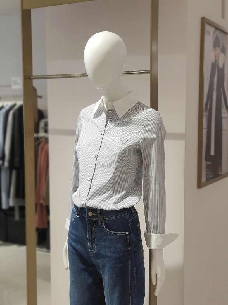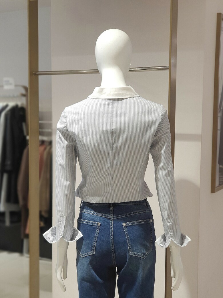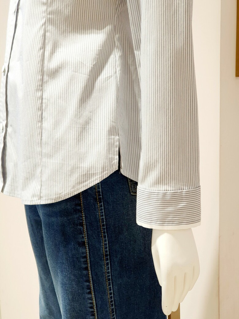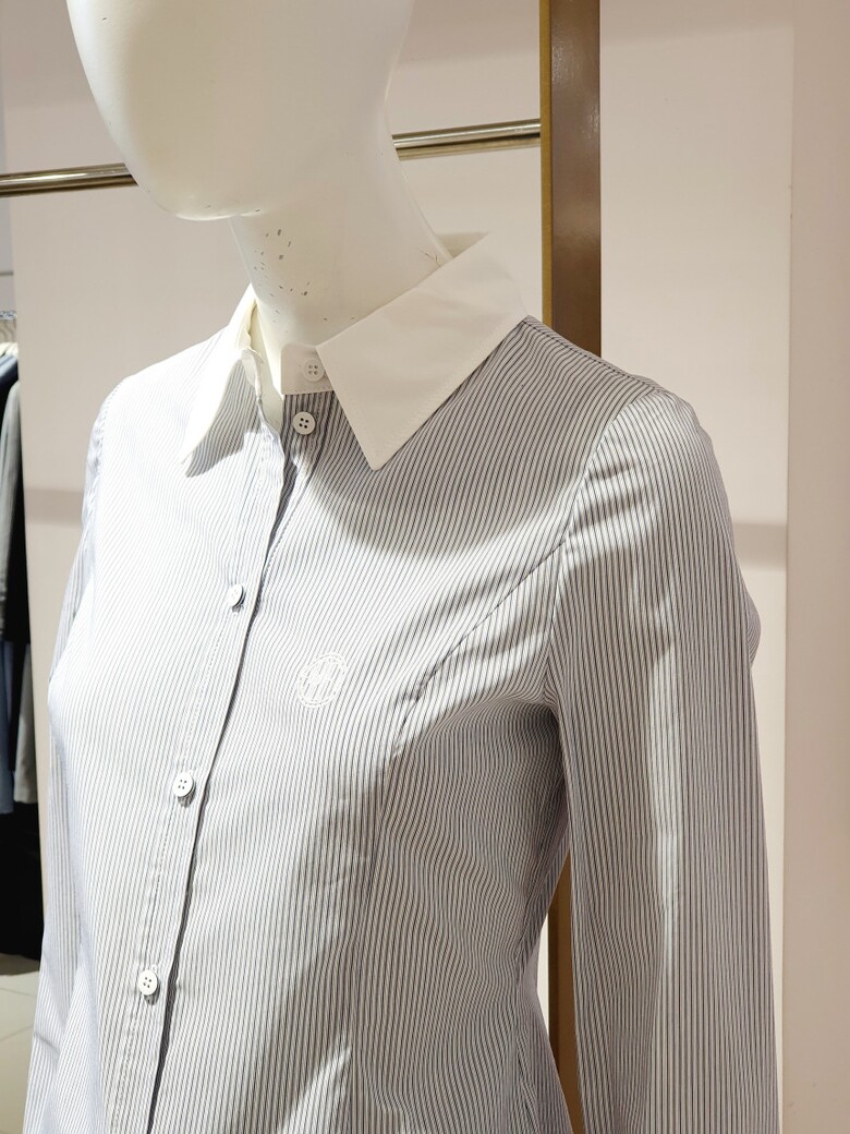 배색 카라와 소매 안쪽 배색 디테일로 포인트를 준 셔츠입니다.