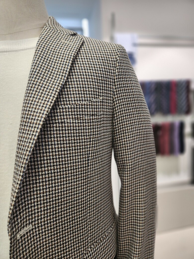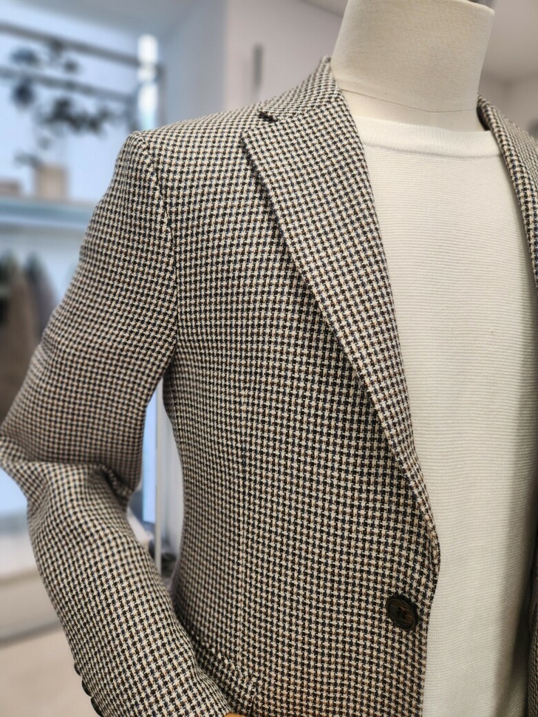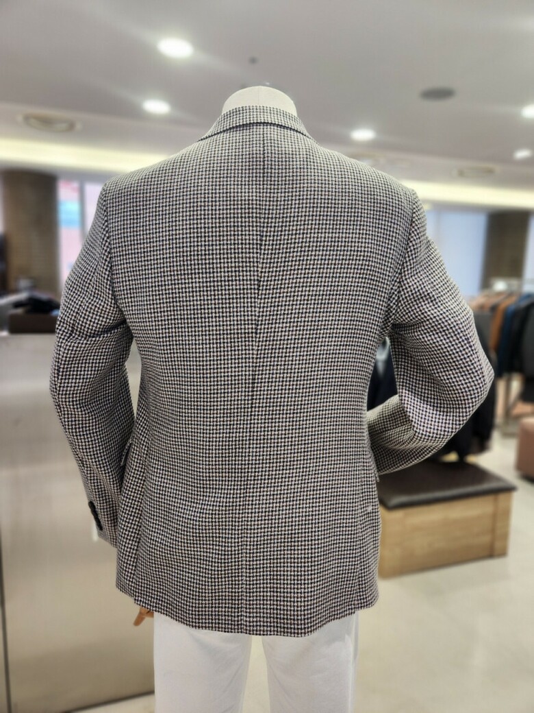 울 혼방 브라운 잔체크 콤비 자켓
