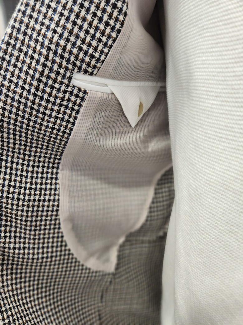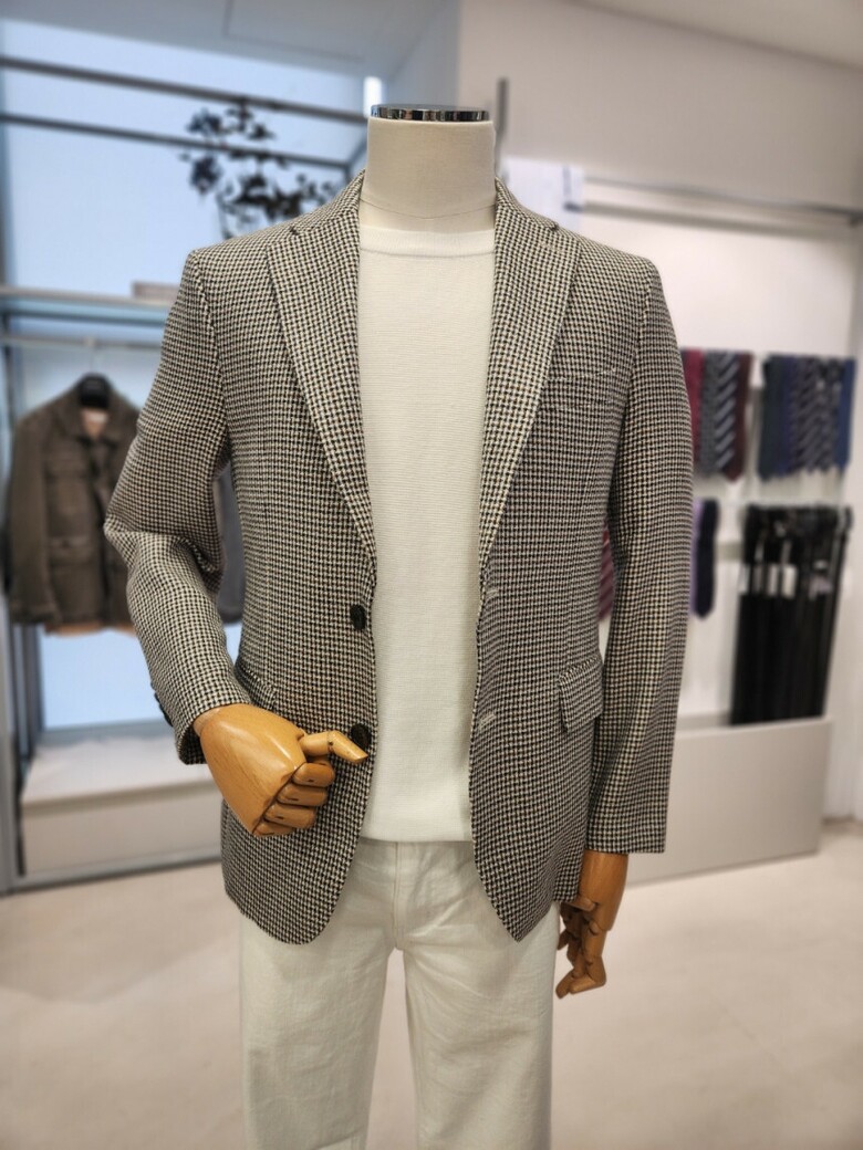 잔체크 원단으로 코디가 쉬우며 부드러운 체크 콤비 자켓 입니다.