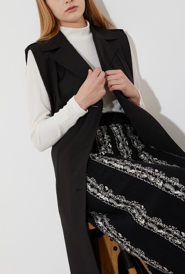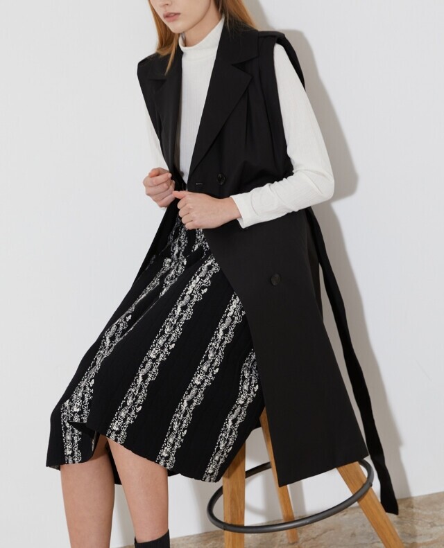 살짝 여유가 있는 네귤러 핏의 베스트로 전체벨트로