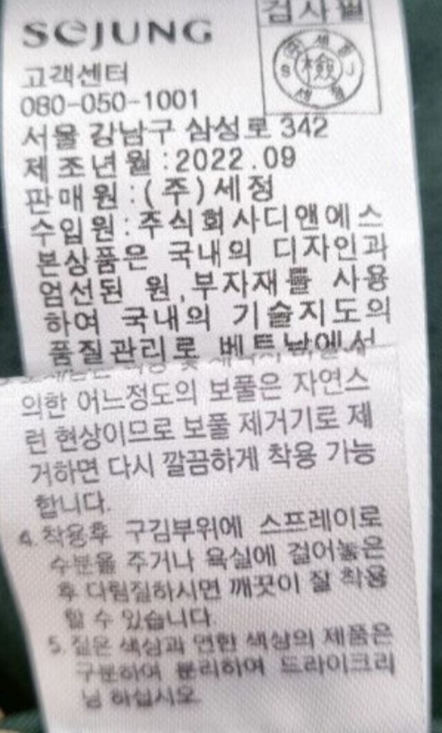 | 6. 세탁방법 및 취급시 주의사항 | 상품상세참조 |