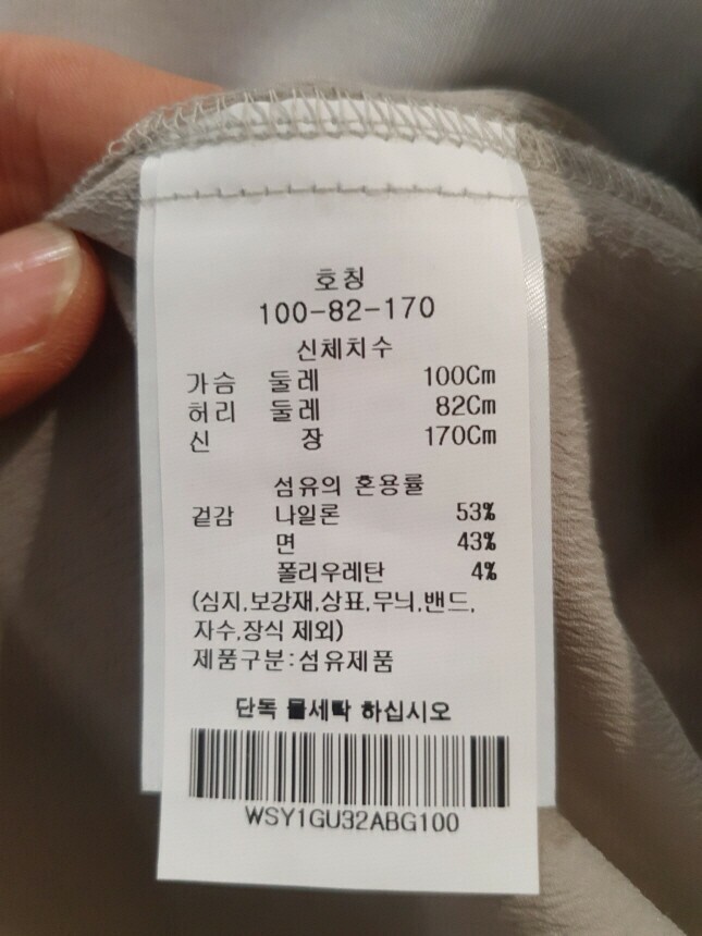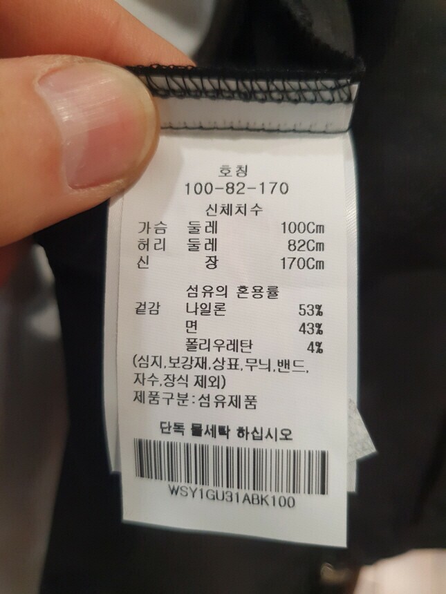 겉감 : 나일론 53% , 면 43% , 폴리우레탄 4%