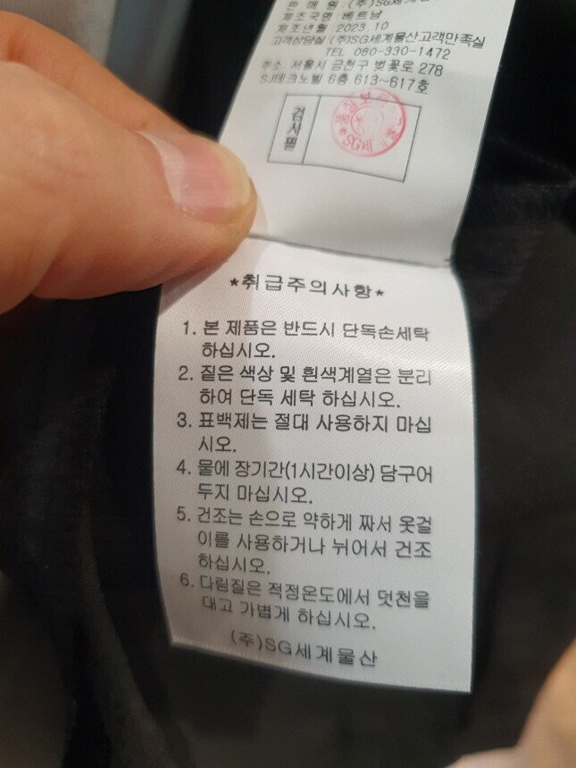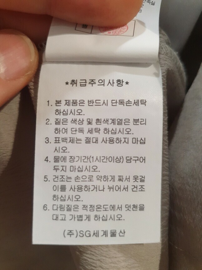 | 6. 세탁방법 및 취급시 주의사항 | 드라이크리닝 |