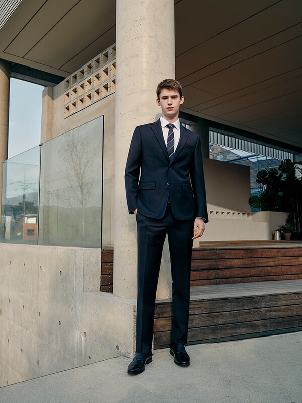 편안하면서도 깔끔한 스타일의 정장입니다.