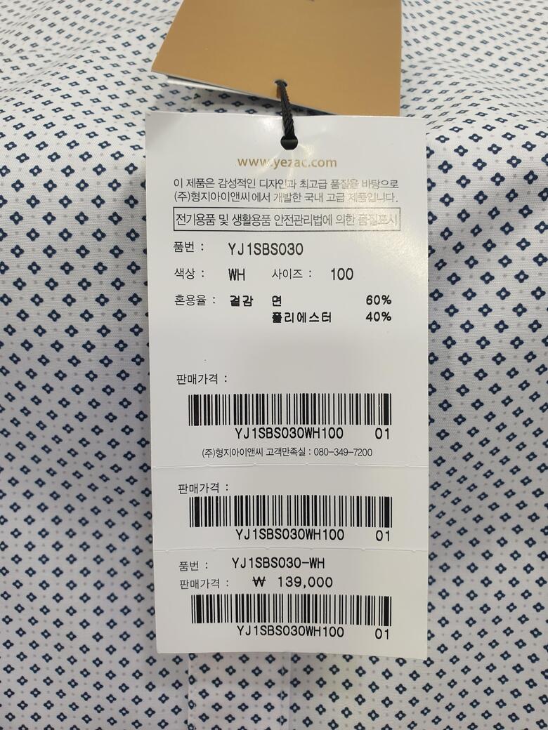 [예작셔츠] 면혼방 올오버 프린트 슬림핏셔츠 YJ1 SBS 030 WH