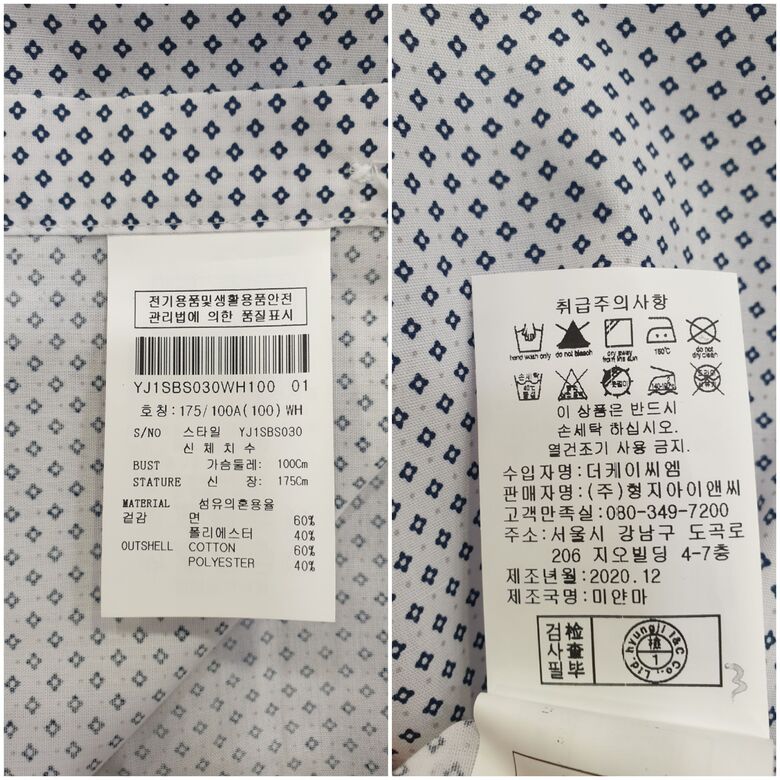 | 6. 세탁방법 및 취급시 주의사항 | 상품상세참조 |