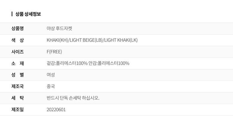 | 6. 세탁방법 및 취급시 주의사항 | 상세페이지 참조 |