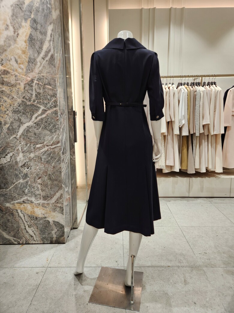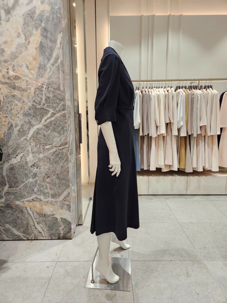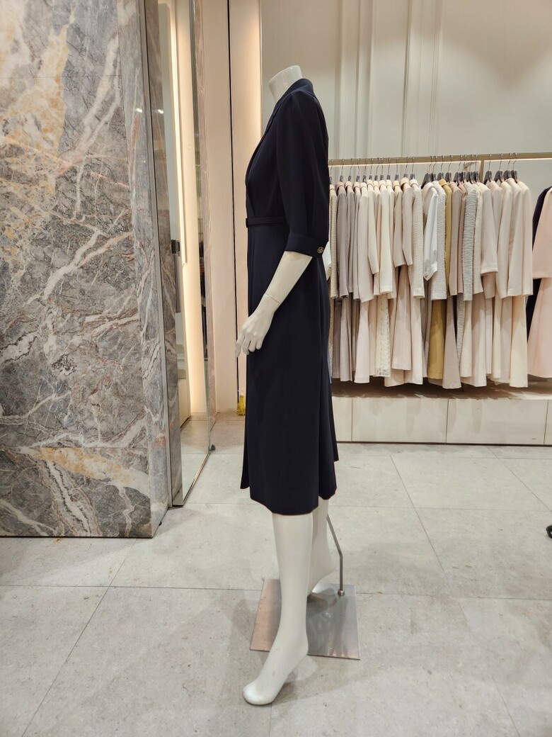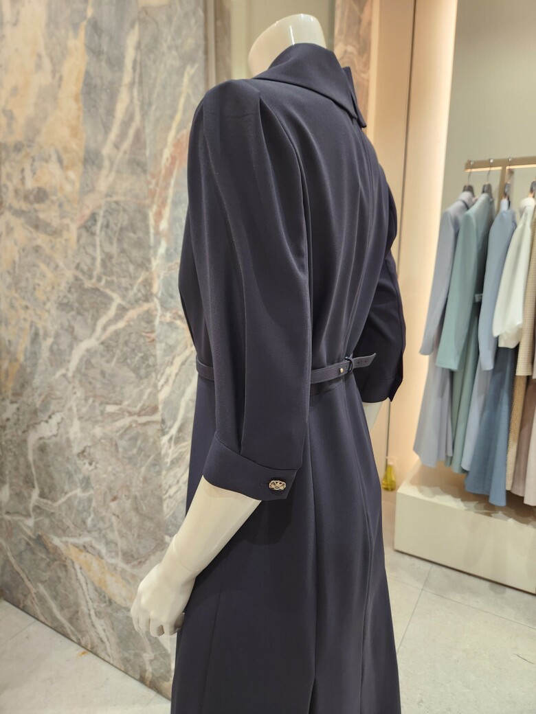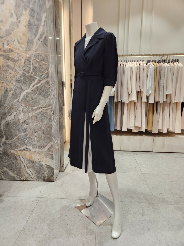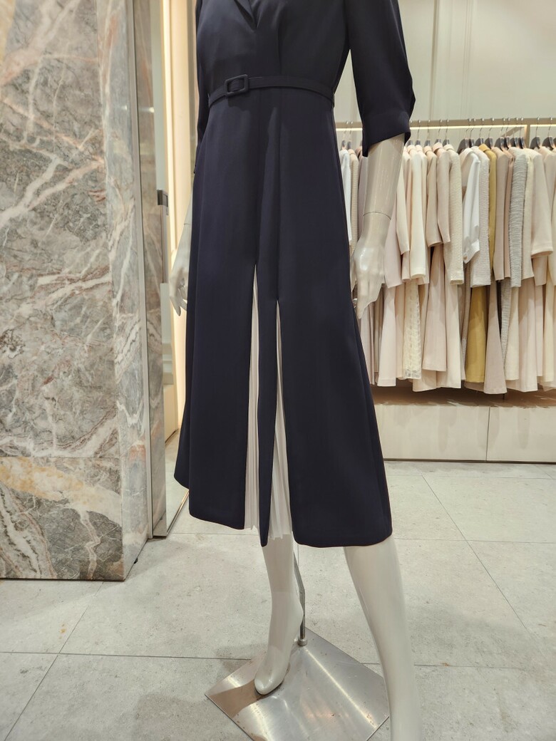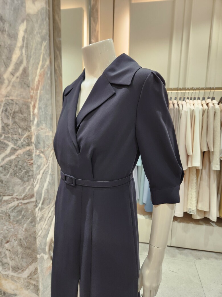 포멀한 디자인의 자켓형 원피스에 트임을 주었으며