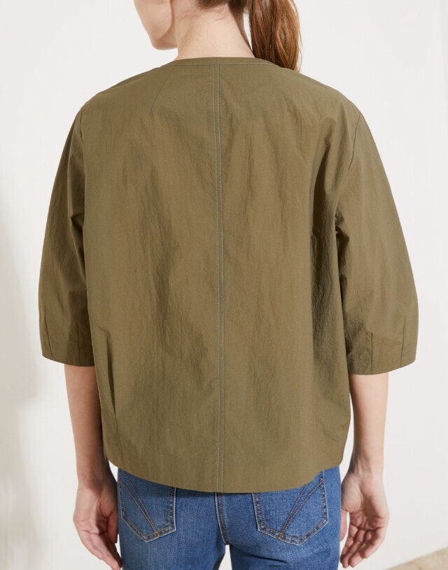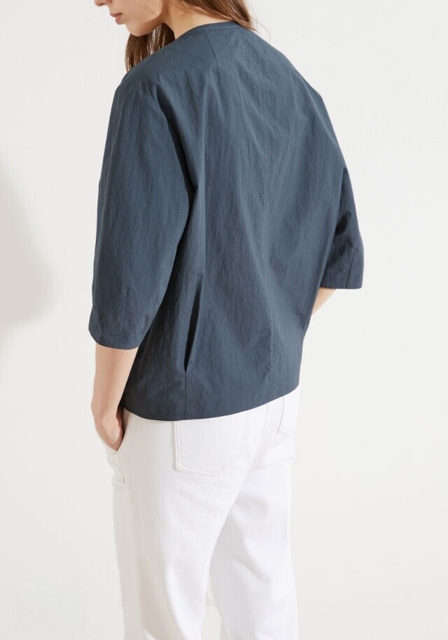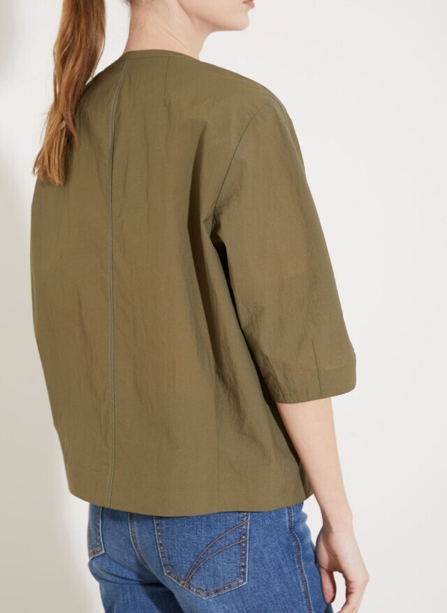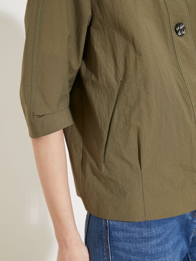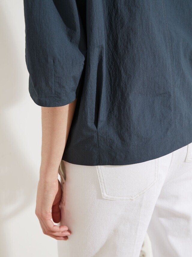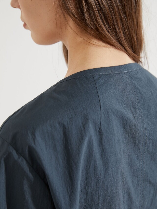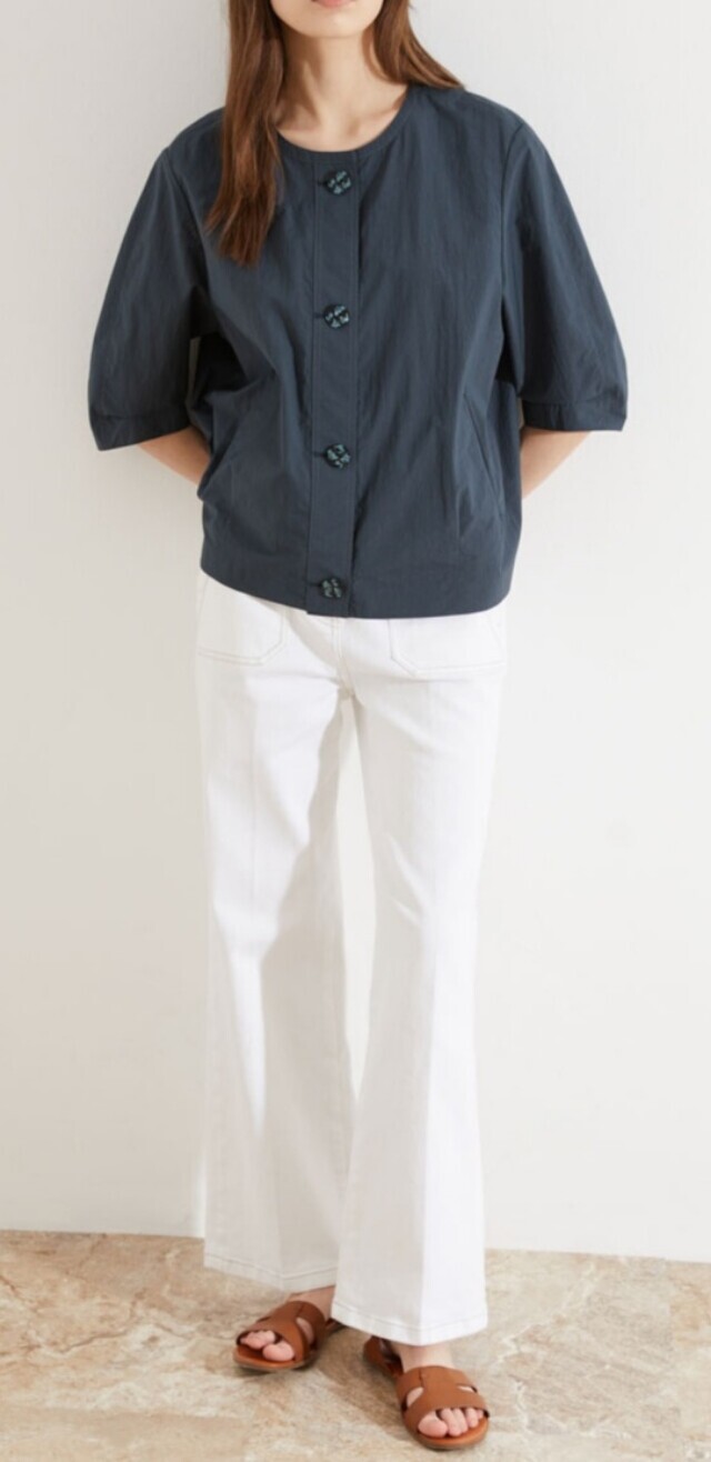 배삭 스티치로 포인트를 주었으며 앞 단추가 캐주얼