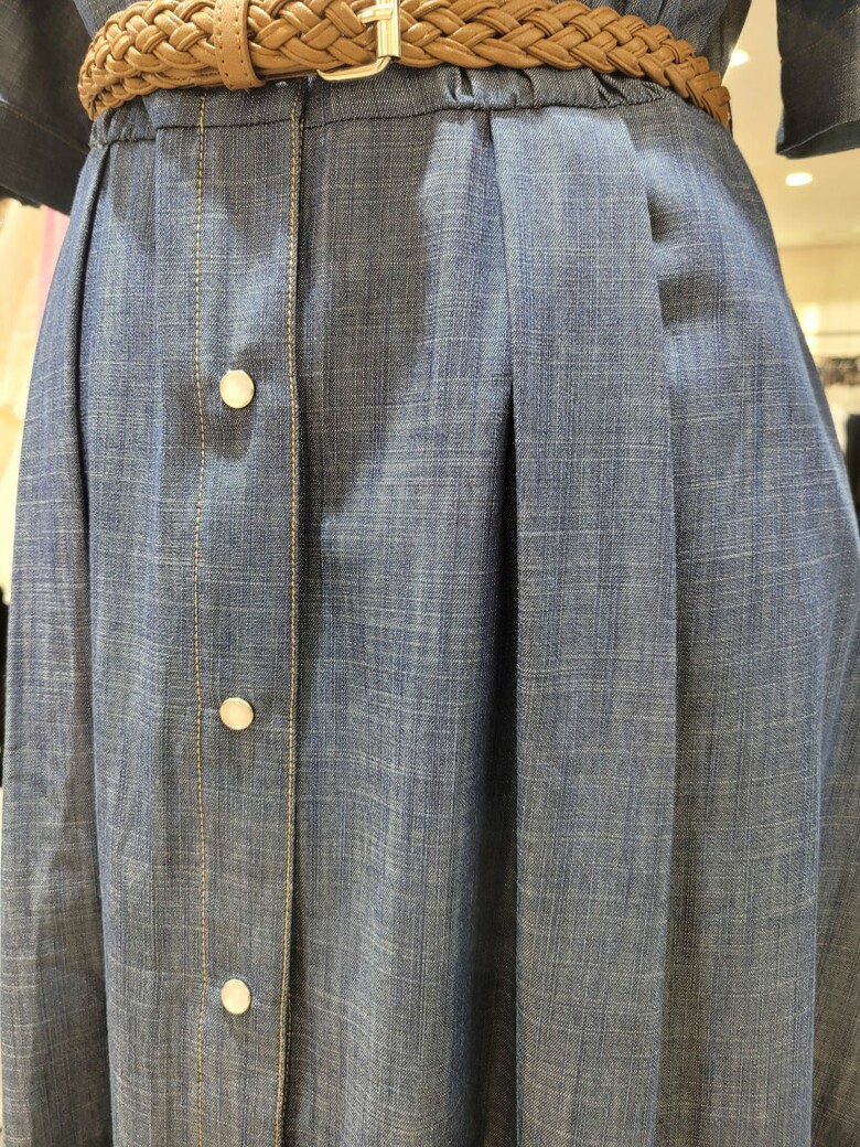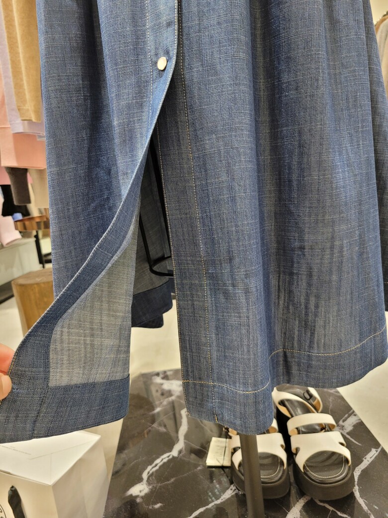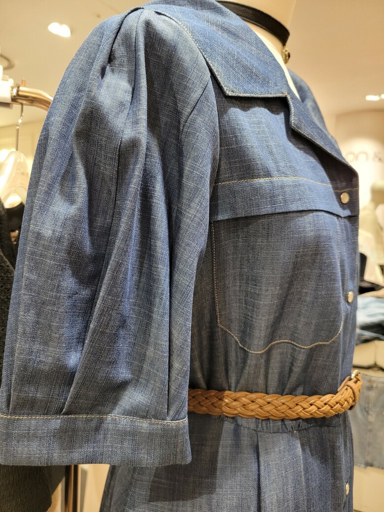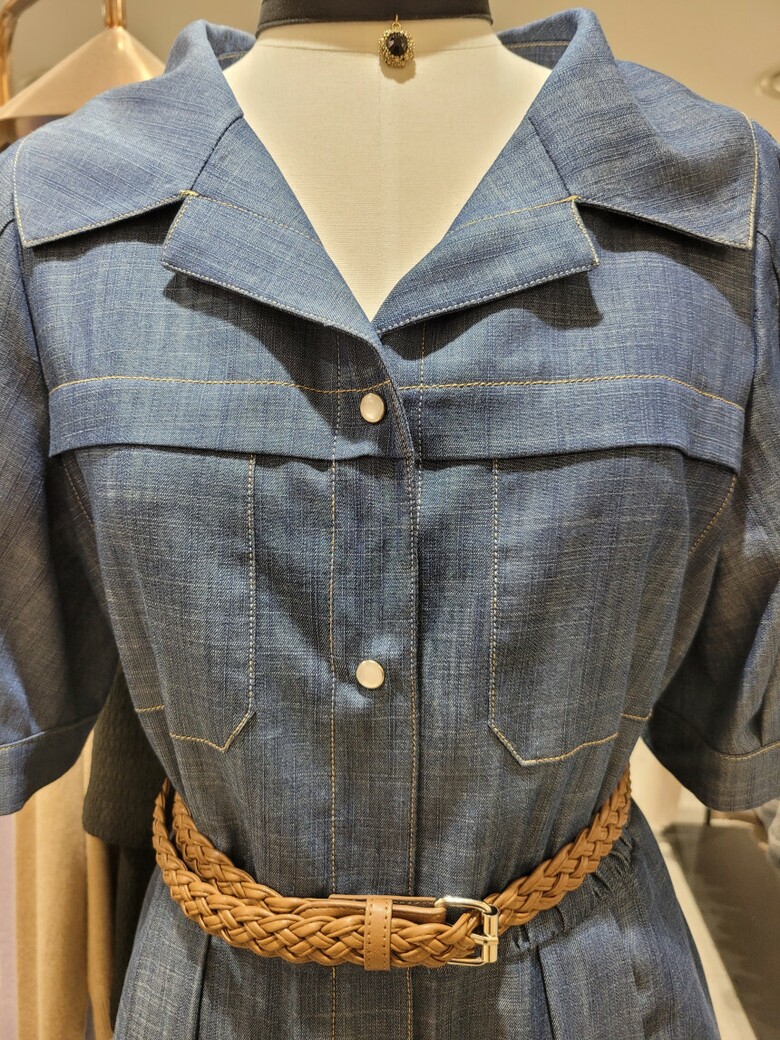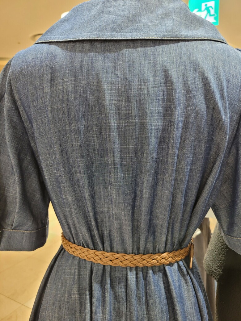 씨씨콜렉트 오픈 카라넥 벨티드 데님 롱 원피스 E242MSE135