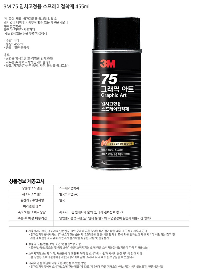 [3M] 스프레이본드75임시접착제 16oz455ml(12입)