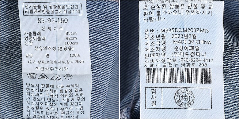 | 6. 세탁방법 및 취급시 주의사항 | 상세페이지 참조 |