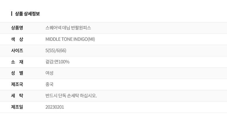 | 2. 색상 | 색상:MIDDLE TONE INDIGO(MI) |