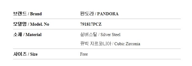 | 1. 소재 / 순도 / 밴드재질 | 실버 / 쥬얼리 - 스털링실버 / 팬던트 - 큐빅 지르코니아 |