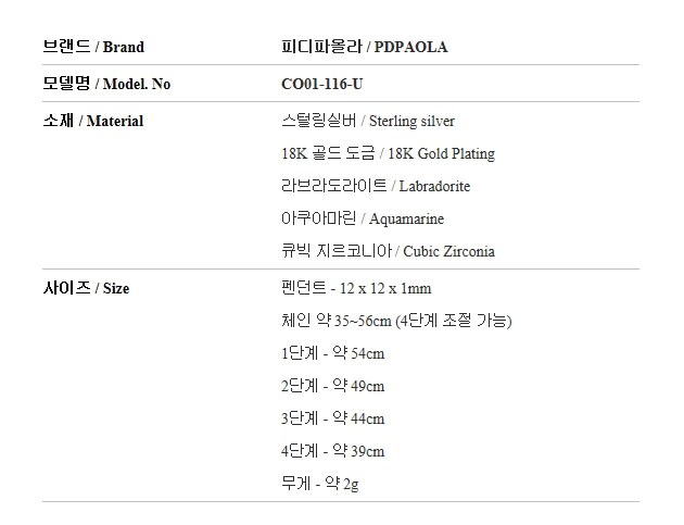 피디파올라 PDPAOLA CO01-116-U 여성 목걸이