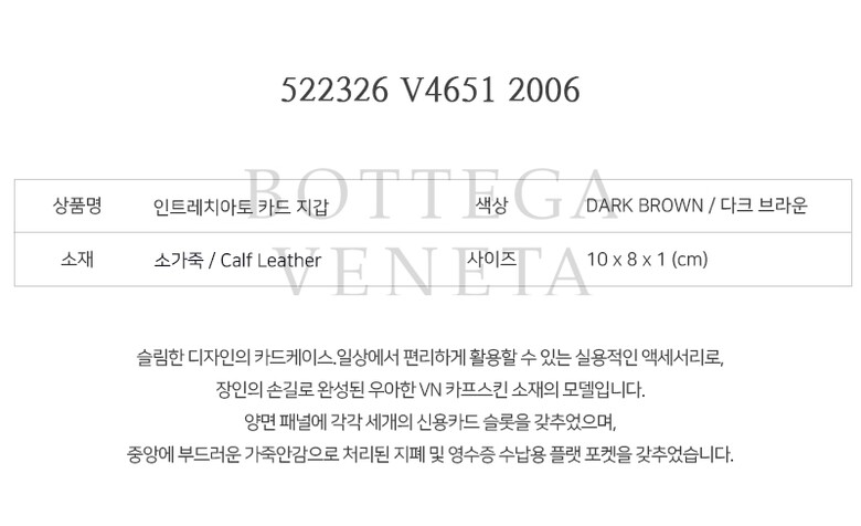 보테가베네타 BOTTEGA VENETA 522326 V4651 2006 남성 카드지갑