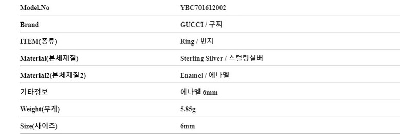 구찌 GUCCI YBC701612002 인터로킹 G 에나멜 6mm 실버 공용 반지