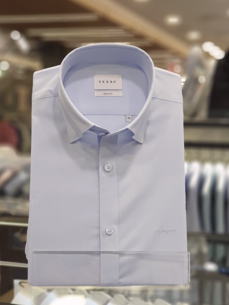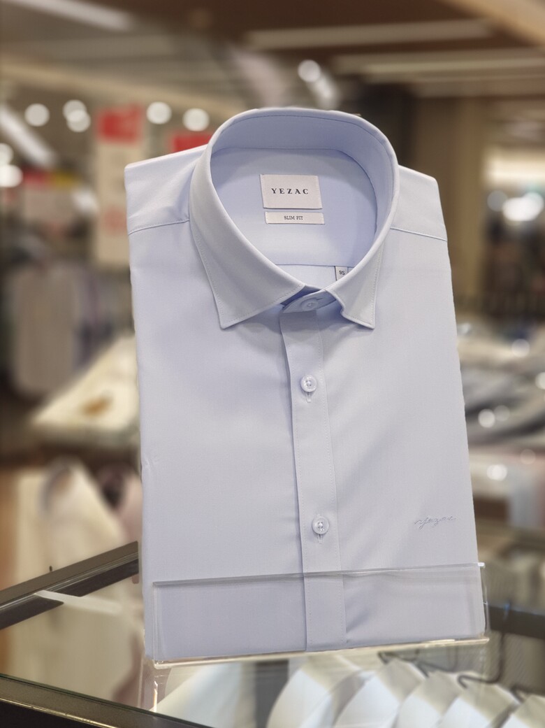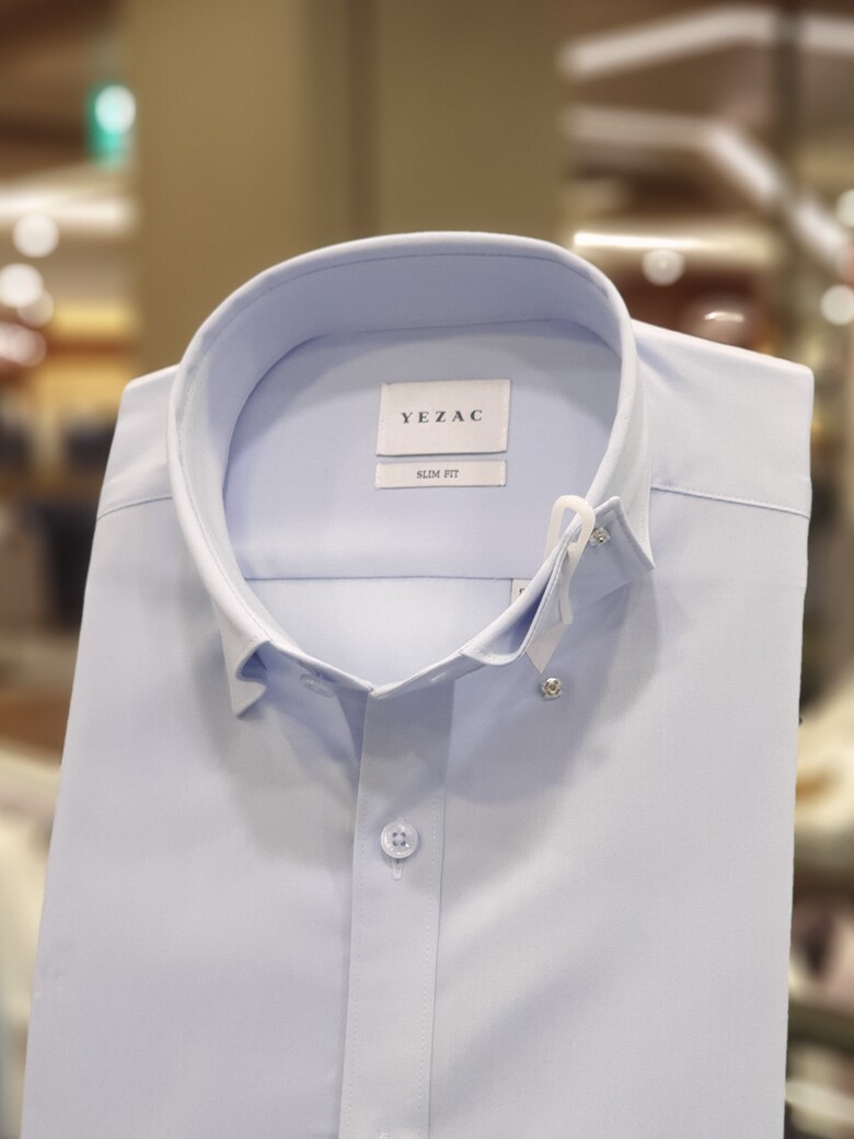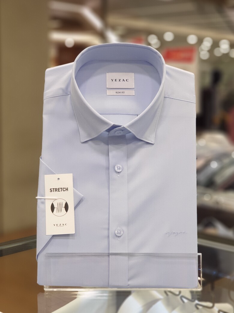 [예작셔츠] 반소매 블루 사방스판 링클프리 카라 스냅버튼 슬림핏 셔츠 YJ4 MBS 252 BL