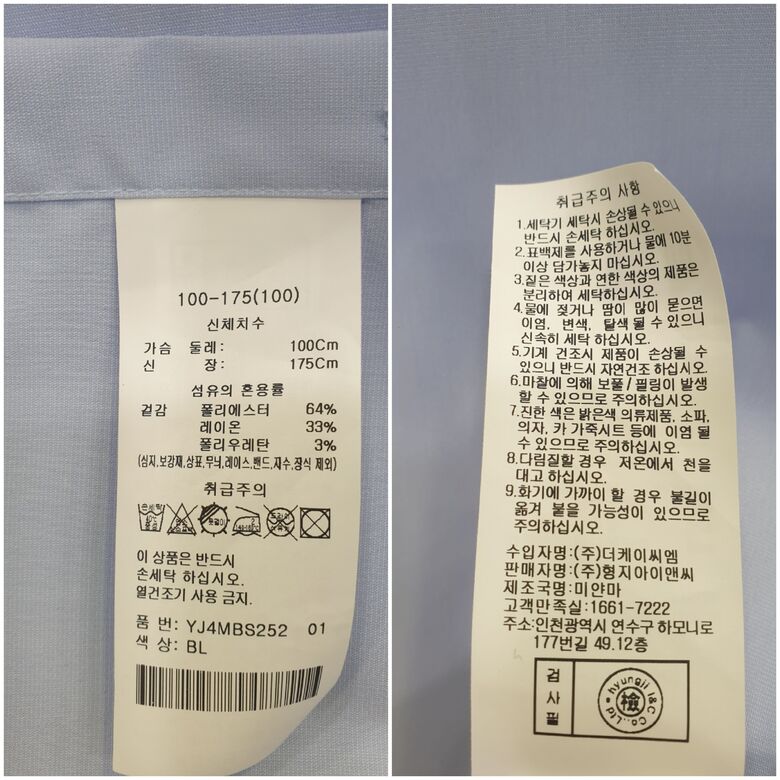 | 6. 세탁방법 및 취급시 주의사항 | 상품상세참조 |