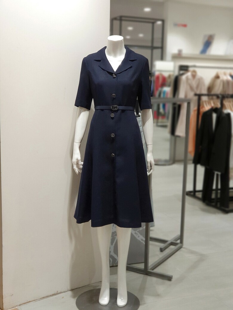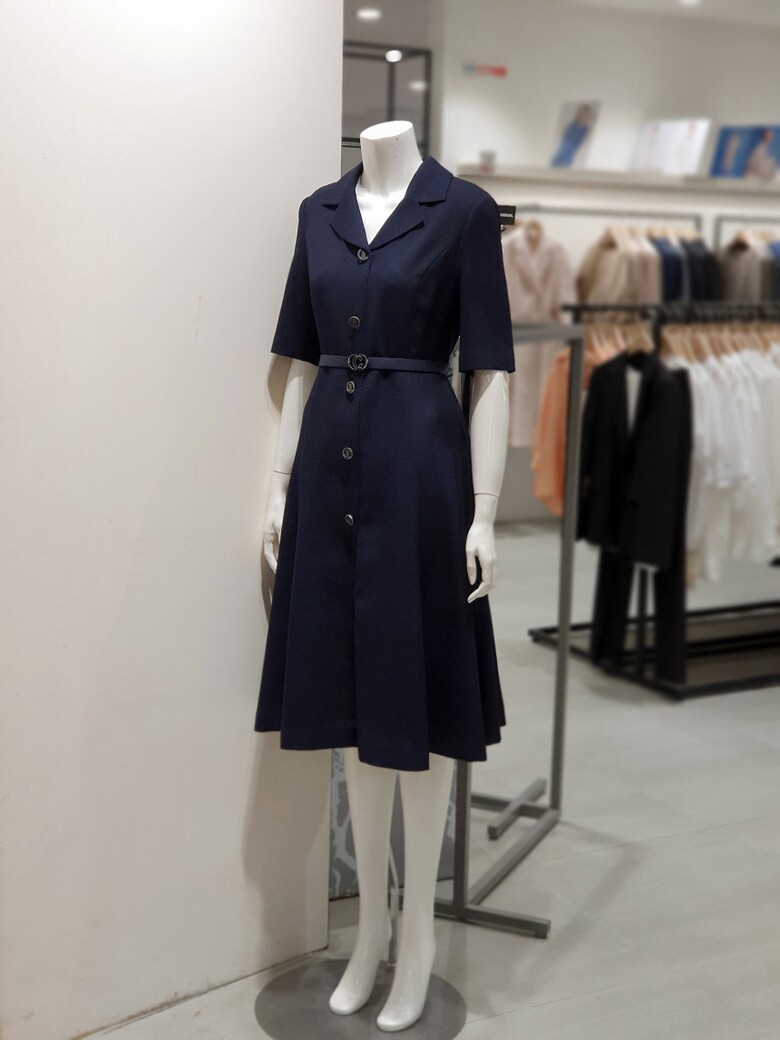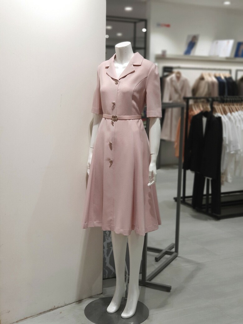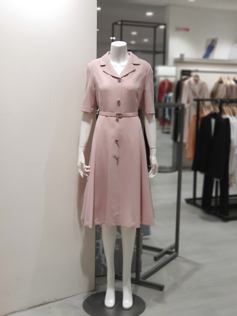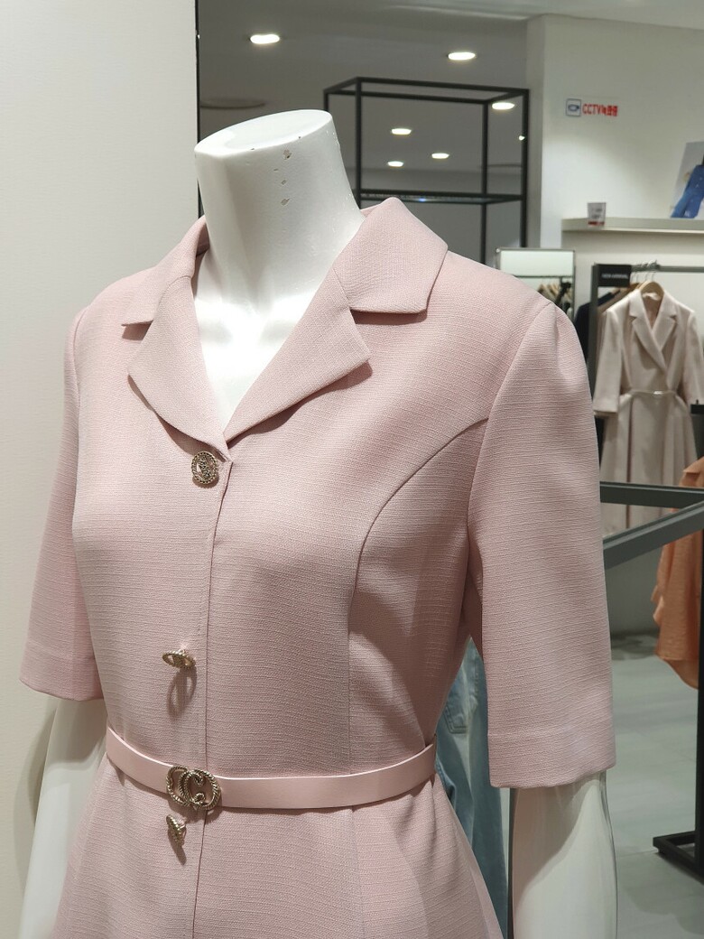 고급스러운 벨트 장식과 카라 넥이 포멀한