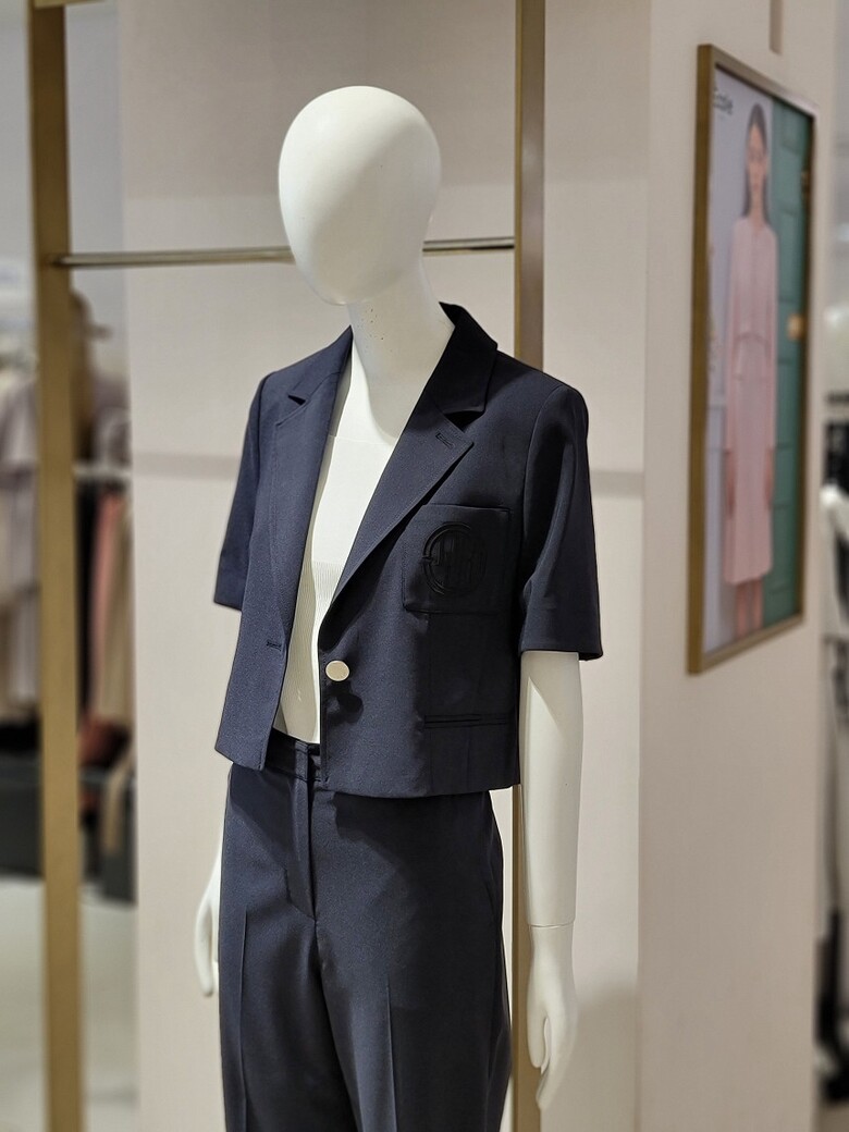 허리라인에 맵시 있게 떨어지는 크롭 재킷입니다.