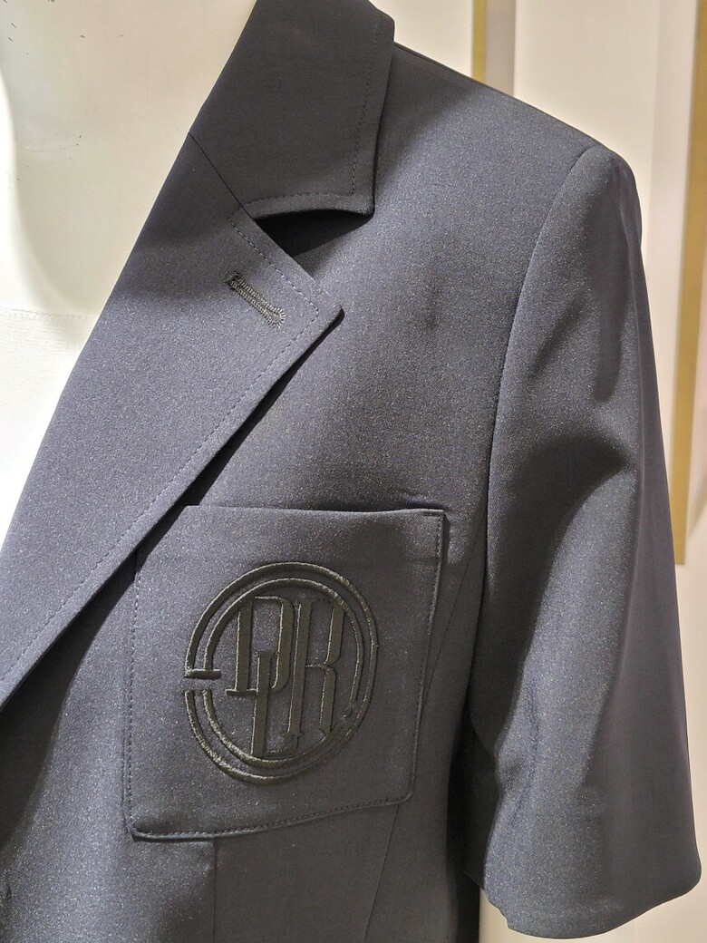 자수 디테일의 패치 포켓이 프런트 입체감을 더하며