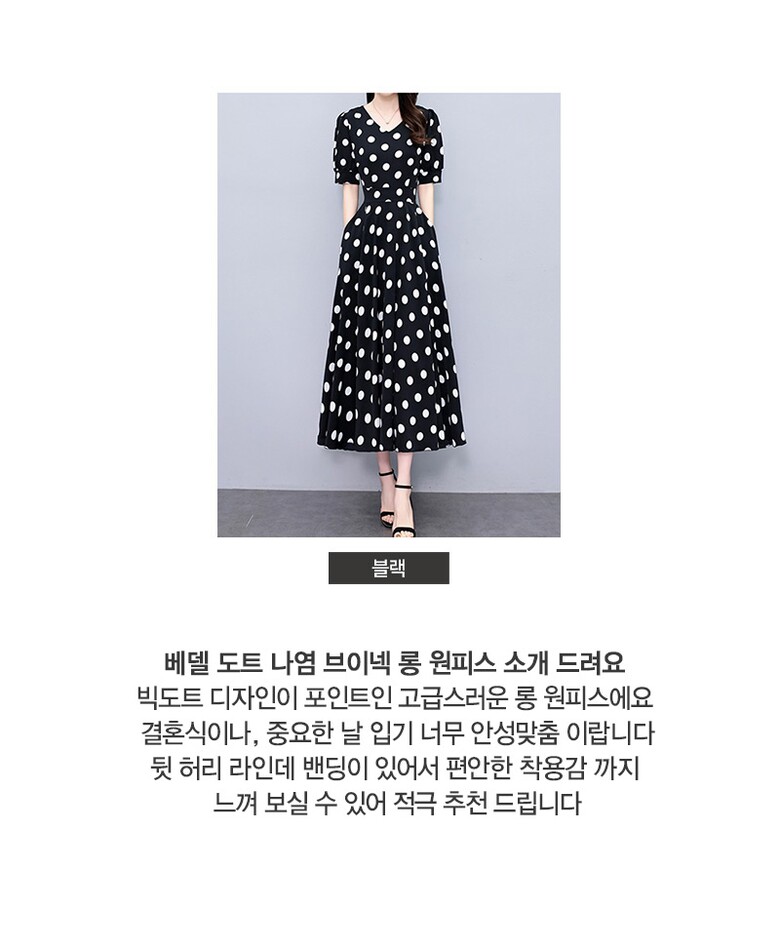 [~88까지]베델 도트 나염 브이넥 롱 원피스