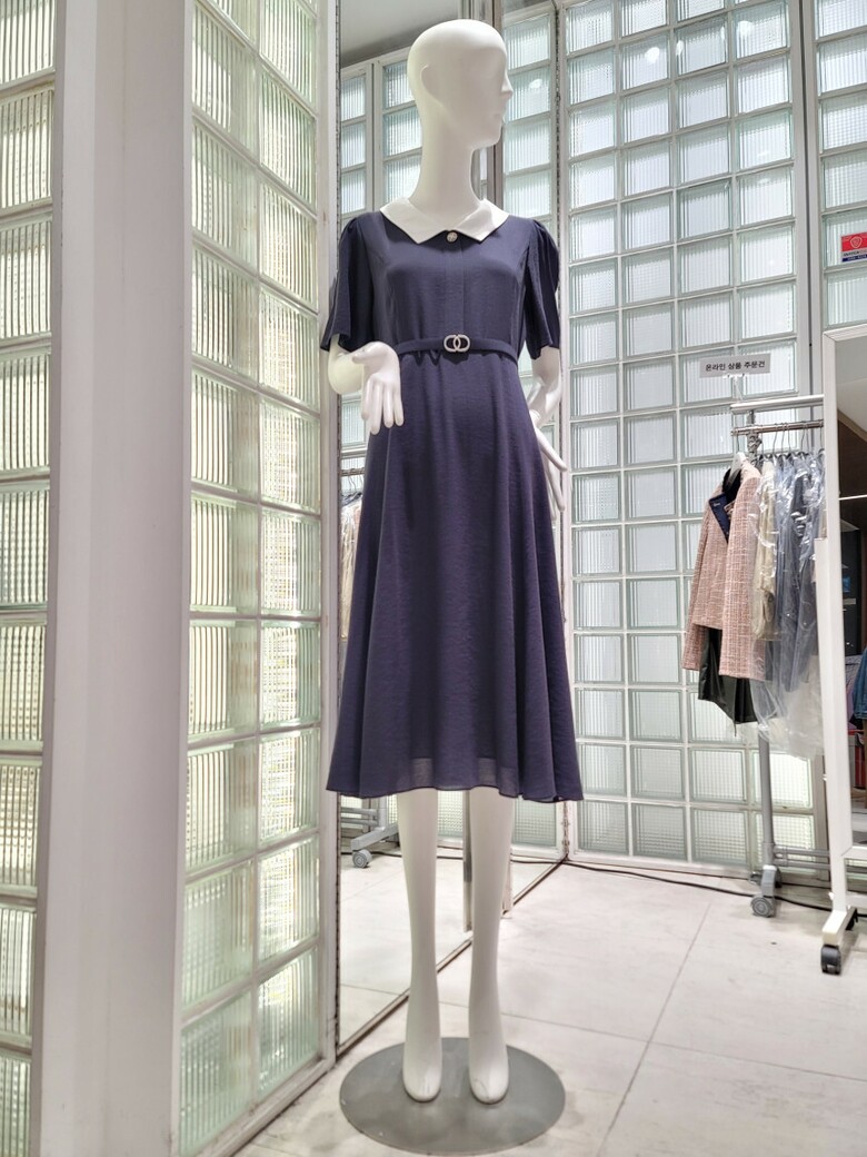 ZOOC 화이트 카라 벨트 시폰원피스 V242PSE944