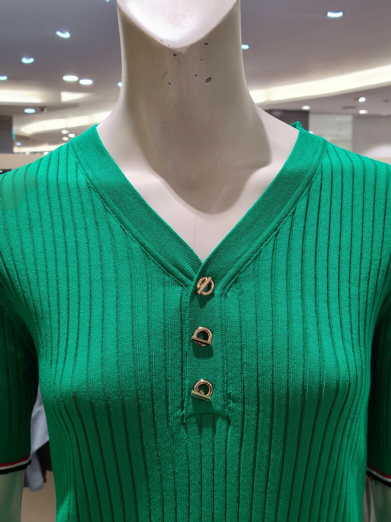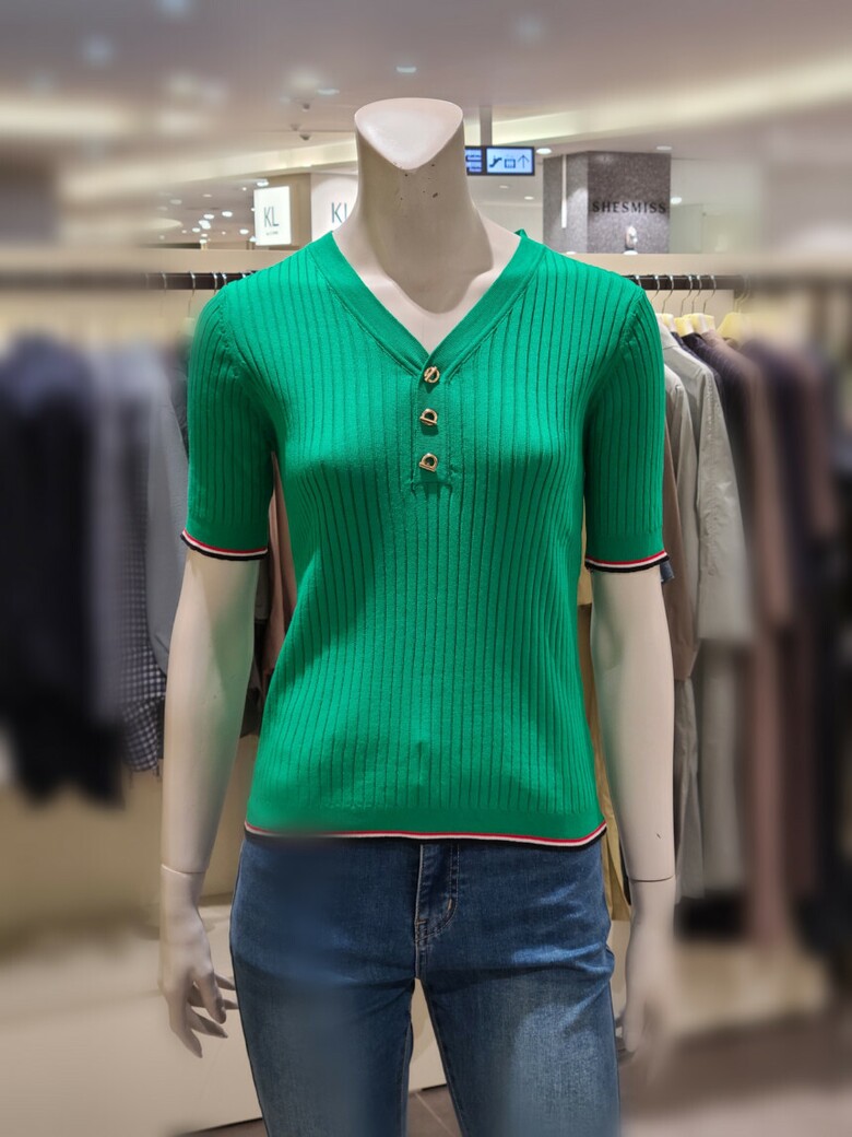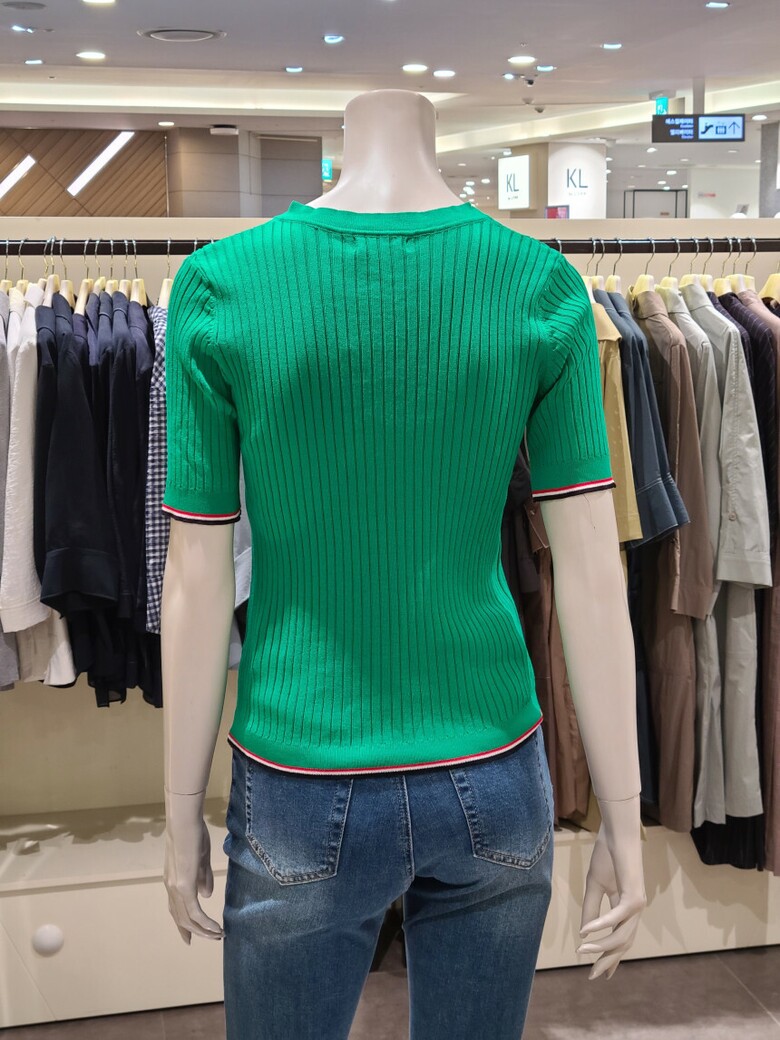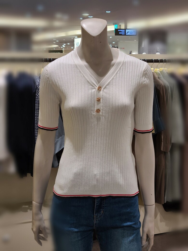 브이넥 슬림핏 골지 티셔츠입니다