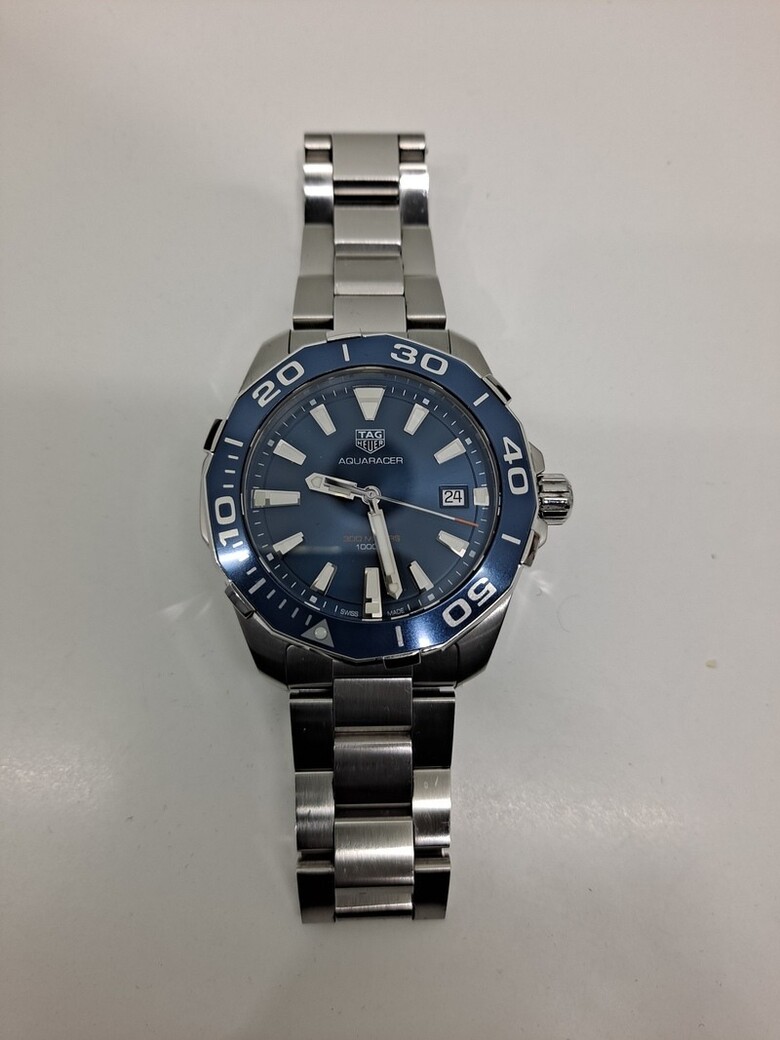 [중고명품] 태그 호이어 실버 블루 아쿠아레이서 쿼츠 스틸 시계 46mm