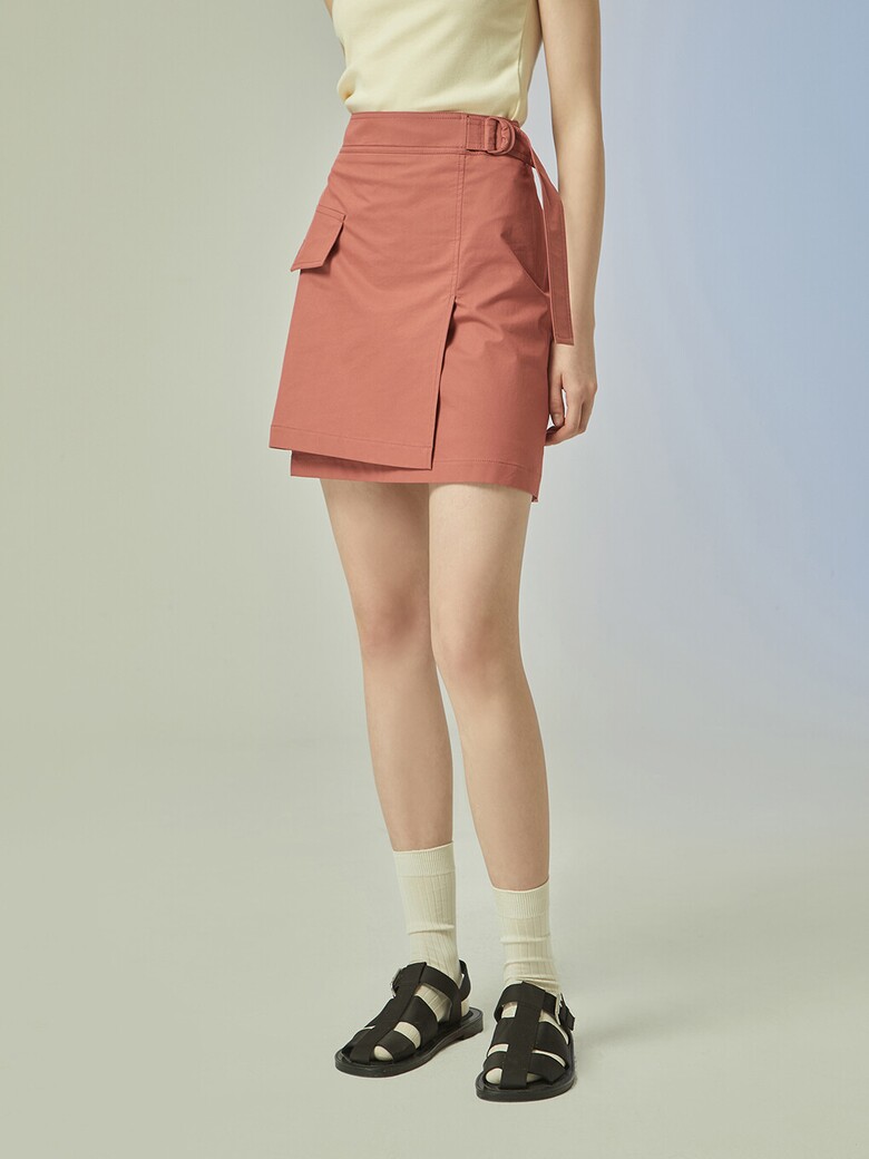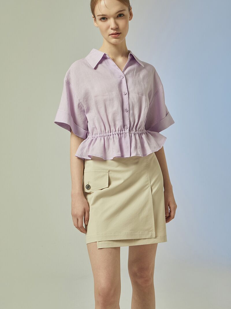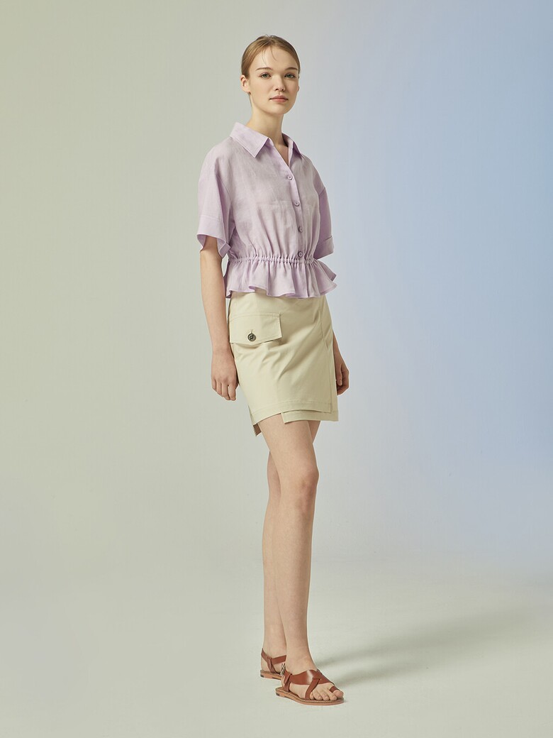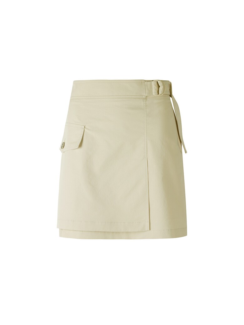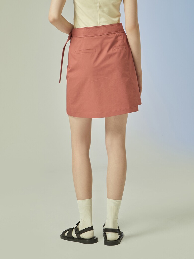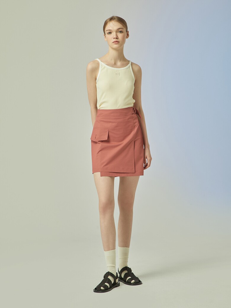 - 밑단에 언발란스한 기장의 차이가 트렌디한 미니 기장의 랩 스커트입니다.