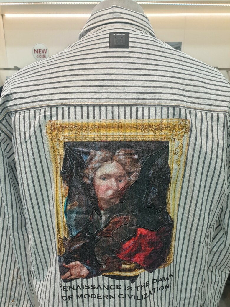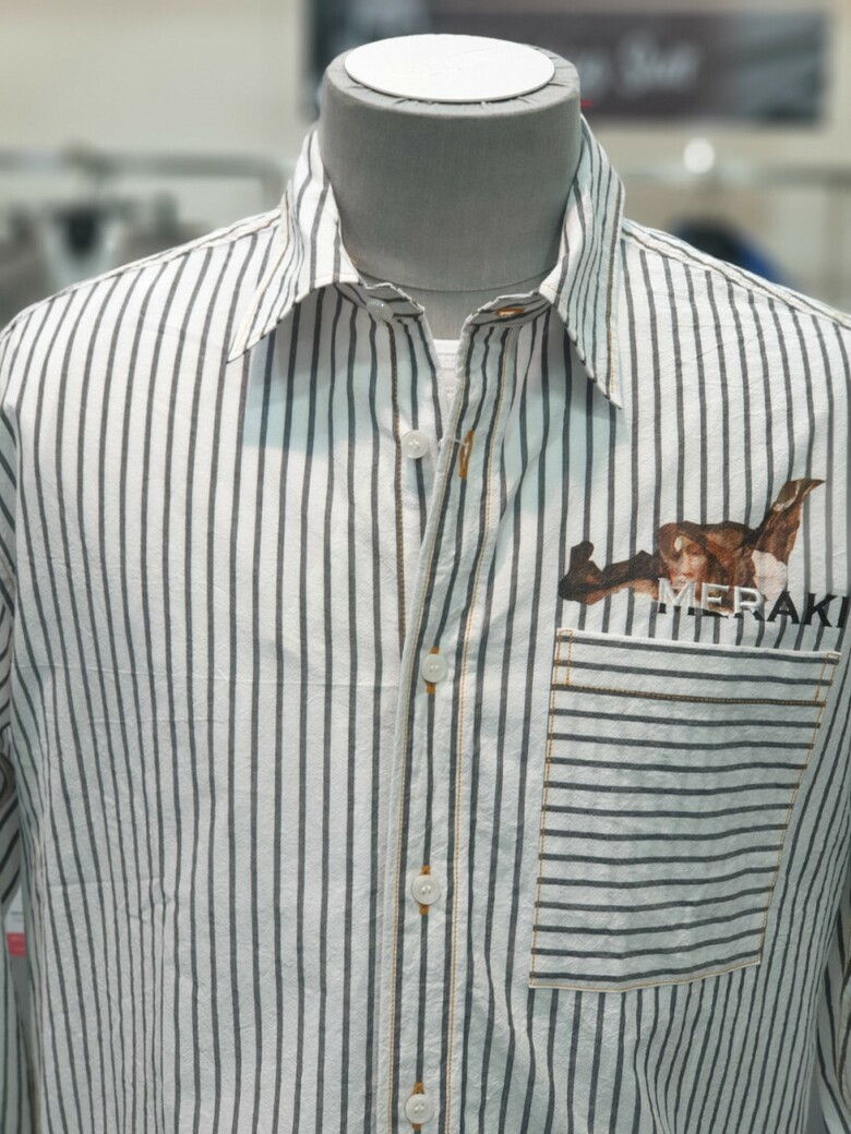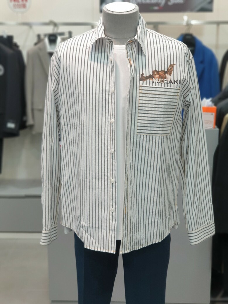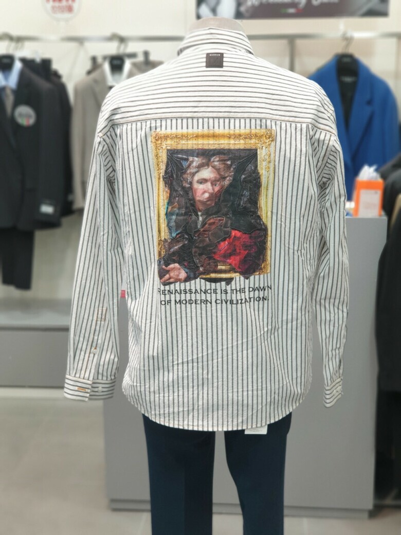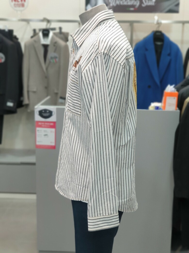 BON 22SS 블랙 스트라이프 메라키 아트웍 세미 오버 남방BN2SBA373BK