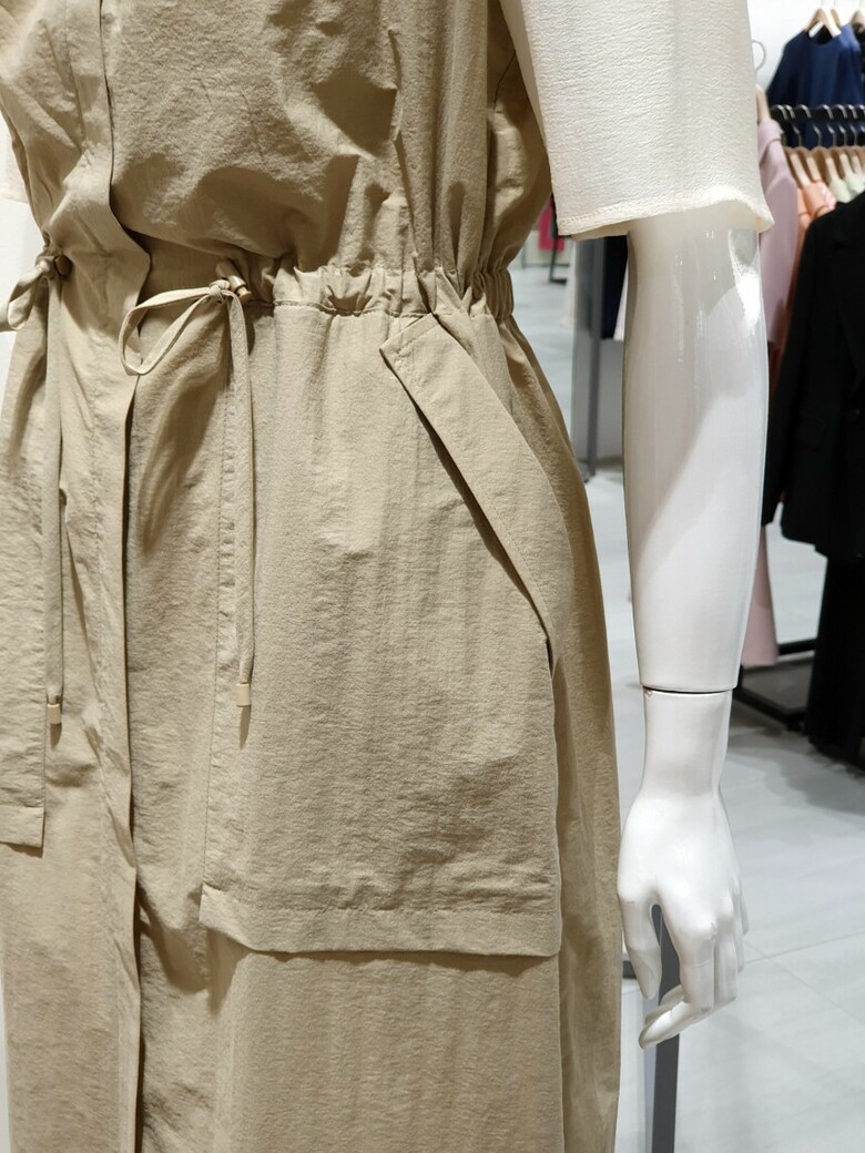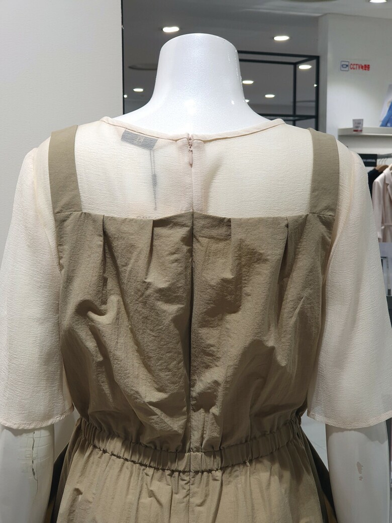 블라우스 배색 스트링 원피스 KWOPOG0200