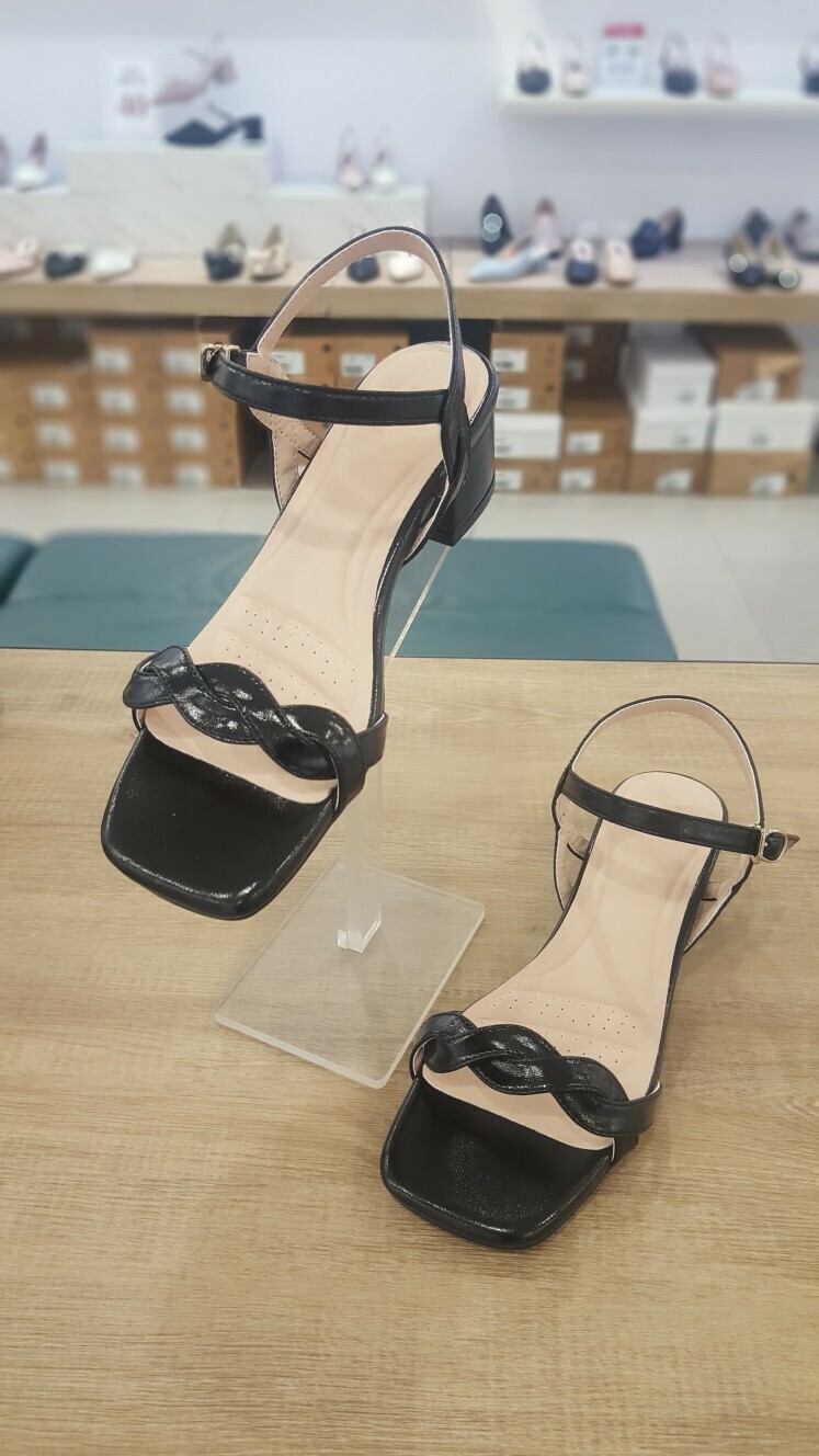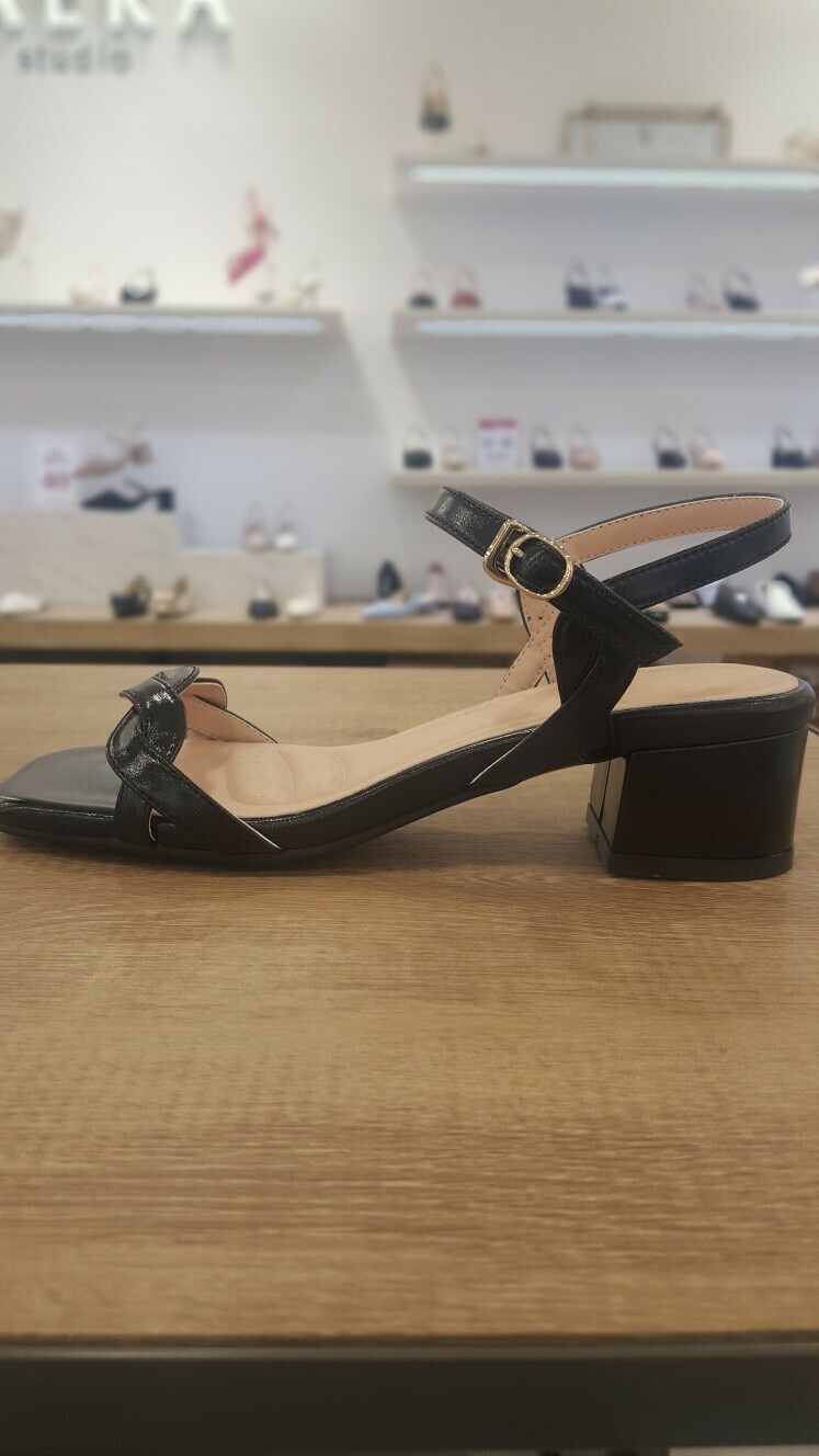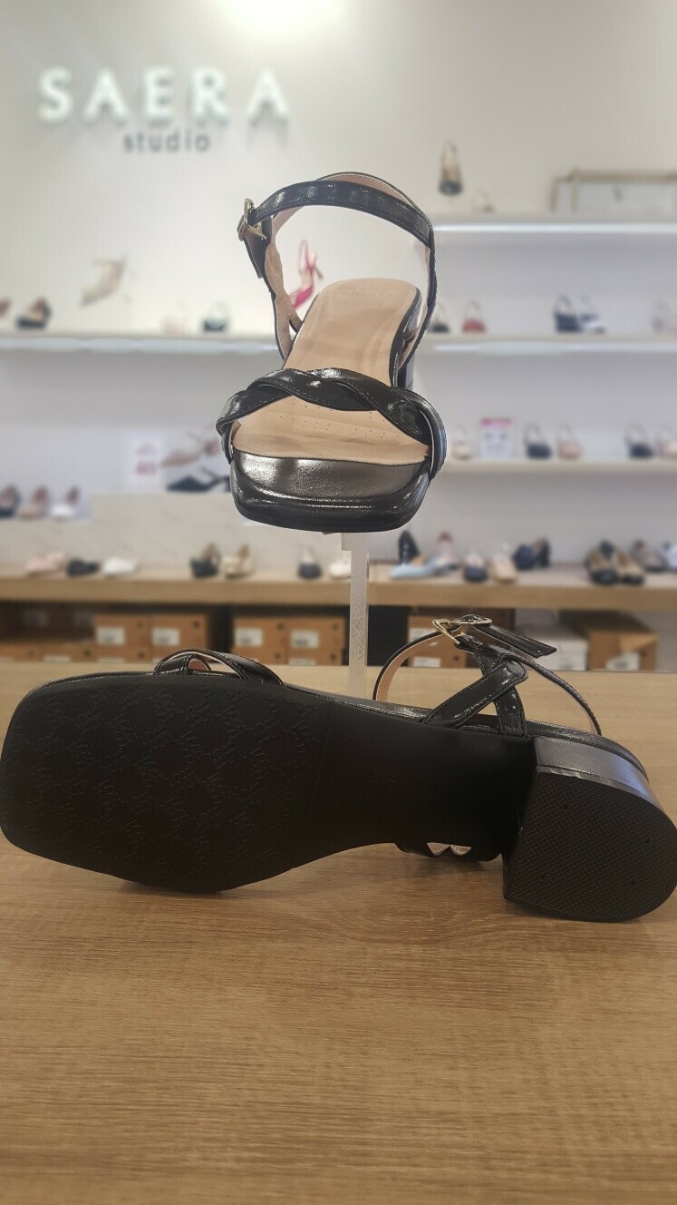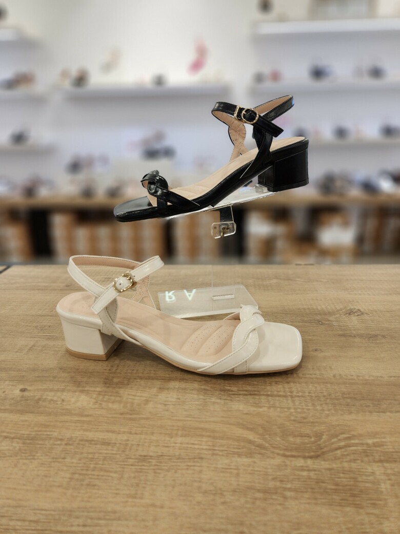 [세라] (2color) 블럭굽 4cm 웨이브 소가죽 스퀘어토 여성 발목 스트랩 샌들 c24s510