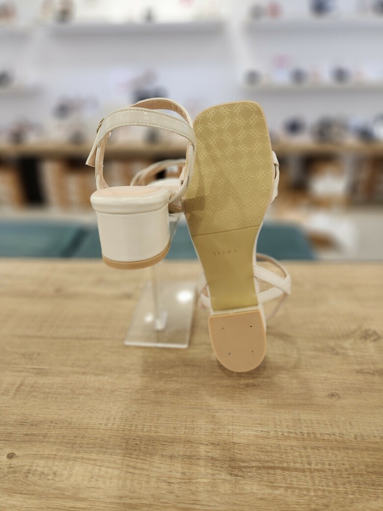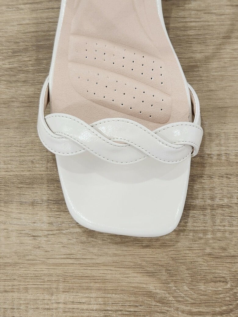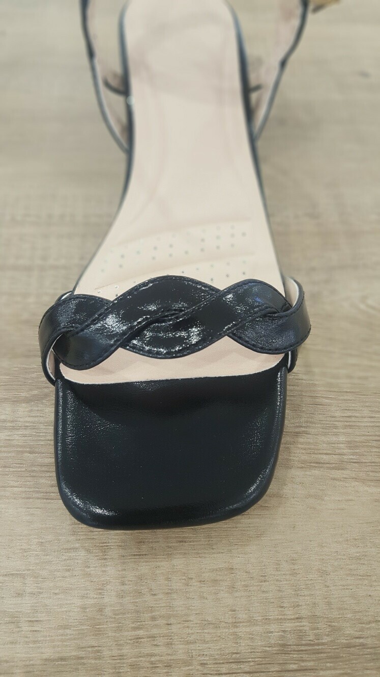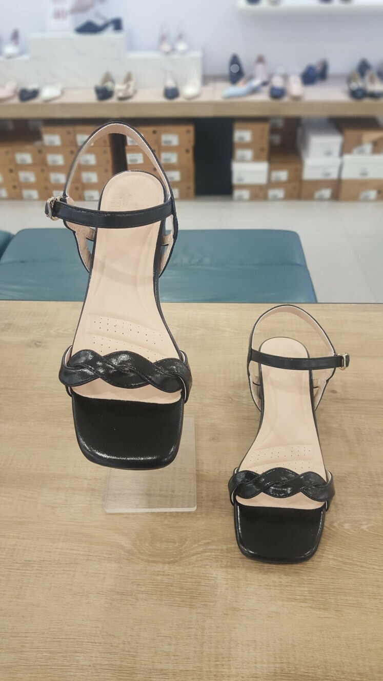 [세라] (2color) 블럭굽 4cm 웨이브 소가죽 스퀘어토 여성 발목 스트랩 샌들 c24s510
